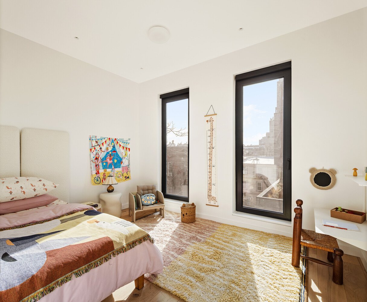 Der 4. Stock (erste Ebene des Hauses) ist für Privaträume vorgesehen, mit vier ruhigen Schlafzimmern, die auf Komfort ausgelegt sind und auch als Homeoffice, Gästezimmer oder der Bastelraum dienen können, von dem Sie geträumt haben, aber nie genug Platz hatten, um sie zum Leben zu erwecken. Die Hauptsuite verfügt über einen großzügigen begehbaren Kleiderschrank und ein Badezimmer in Spa-Qualität (mit zwei Duschköpfen), das mit Clé-schwarzem Schiefer ausgestattet ist, komplett mit Marmorwaschbecken und einer ruhigen, texturartigen Ästhetik. Zwei weitere Badezimmer sind mit Porcelanosa Avenue Grey strukturierten Porzellanfliesen ausgestattet, die einen eleganten und modernen Kontrast bieten. Ein vielseitiges Arbeitszimmer bietet flexiblen Platz für einen Medienraum, ein Homeoffice oder ein Spielzimmer, während eine übergroße Waschmaschine und ein Gastrockner für den Alltag sorgen. Zwei Schlafzimmer können bei Wunsch problemlos zu einem größeren Schlafzimmer kombiniert werden.