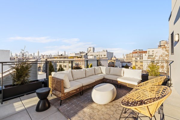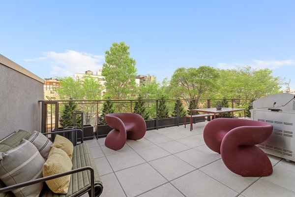 Das Haus wird gekrönt von einer 665 Quadratfuß großen privaten Dachterrasse mit weitläufiger Skyline und Blick auf den Fluss, die die Besucher zum Zusammenkommen einladen. Gestaltete Pflanzgefäße rahmen mehrere Lounge- und Essbereiche ein, während eine eingebaute Außenküche mit einem DCS-36-Zoll-Grill und einem DCS-Kühlschrank mit zwei Schubladen das Empfinden mühelos macht – deinen Lieblingsraum für persönliche Unterhaltung, wo du dich nach einem langen Tag mit einer Decke und einem Buch einkuschelst – oder als Kulisse für Fotos mit den größten Feiern deiner Liebsten.