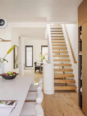 Das Hauptgeschoss führt in einen weitläufigen Wohn- und Essbereich, der von übergroßen Fenstern eingerahmt wird, die den Blick auf die Baumkronen und den ganzen Tag über reichlich natürliches Licht bieten. Eine Gästetoilette, die mit Fliesen aus Fireclay Hunter Green und einem Marmorspülbecken verkleidet ist, verleiht ein gehobenes Designstatement. Weitläufige Schiebetüren aus Glas verschwinden / klappen zu einer nach vorne ausgerichteten Terrasse mit einem DCS-BBQ zusammen – ideal für Feiern für das beste Leben Ihres inneren Kreises, meilenhaft oder an den Ort, an den Sie gehen, wenn das Wetter angenehm wird und ruhige Momente draußen das einzige Highlight auf dem Samstagnachmittagsplan sind.