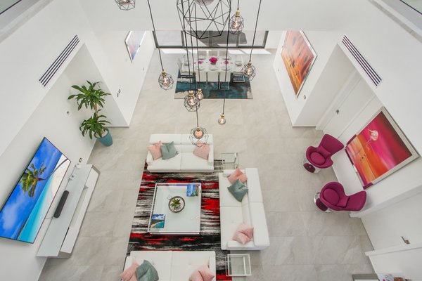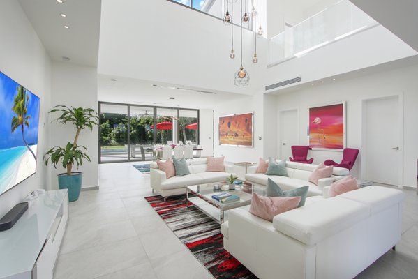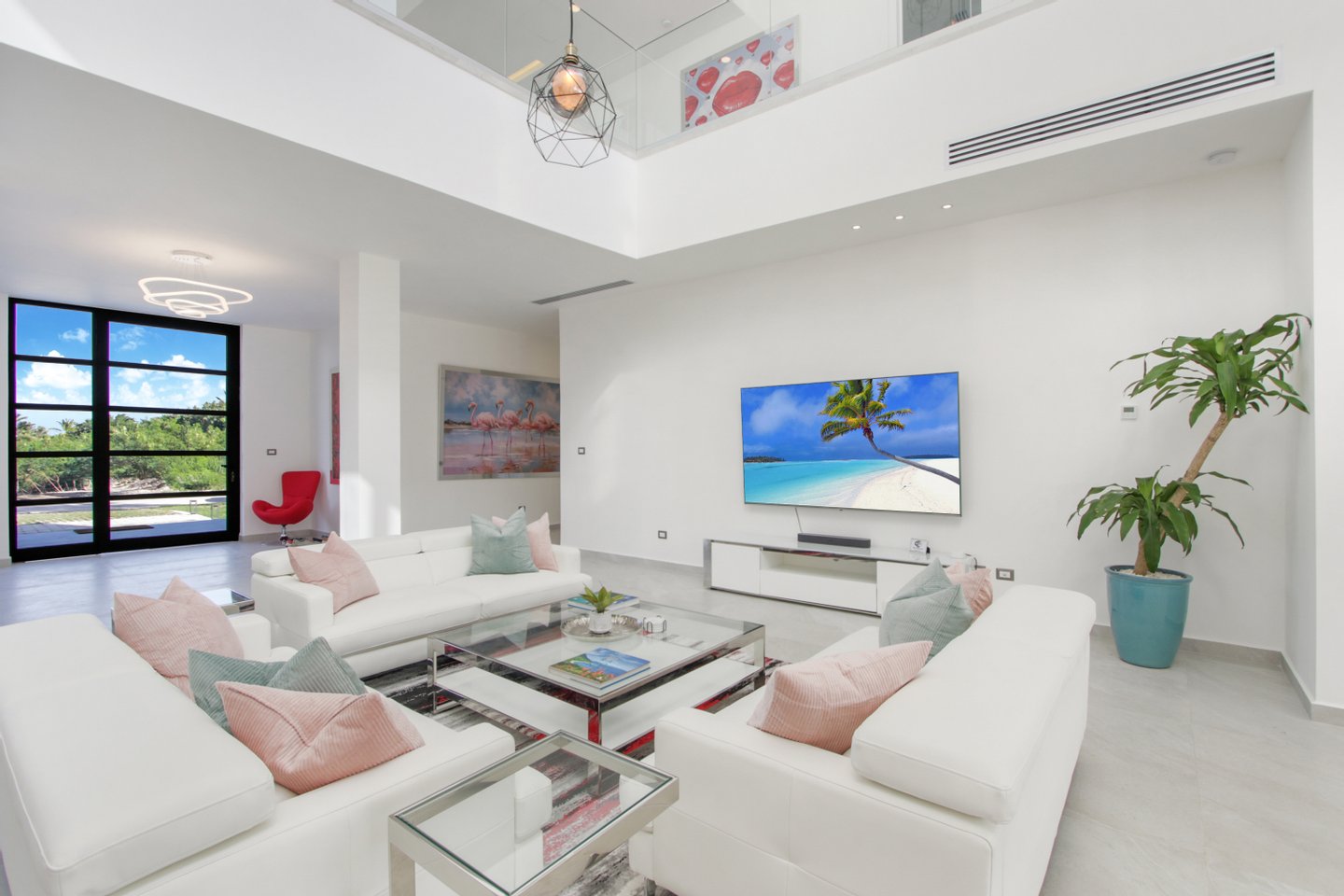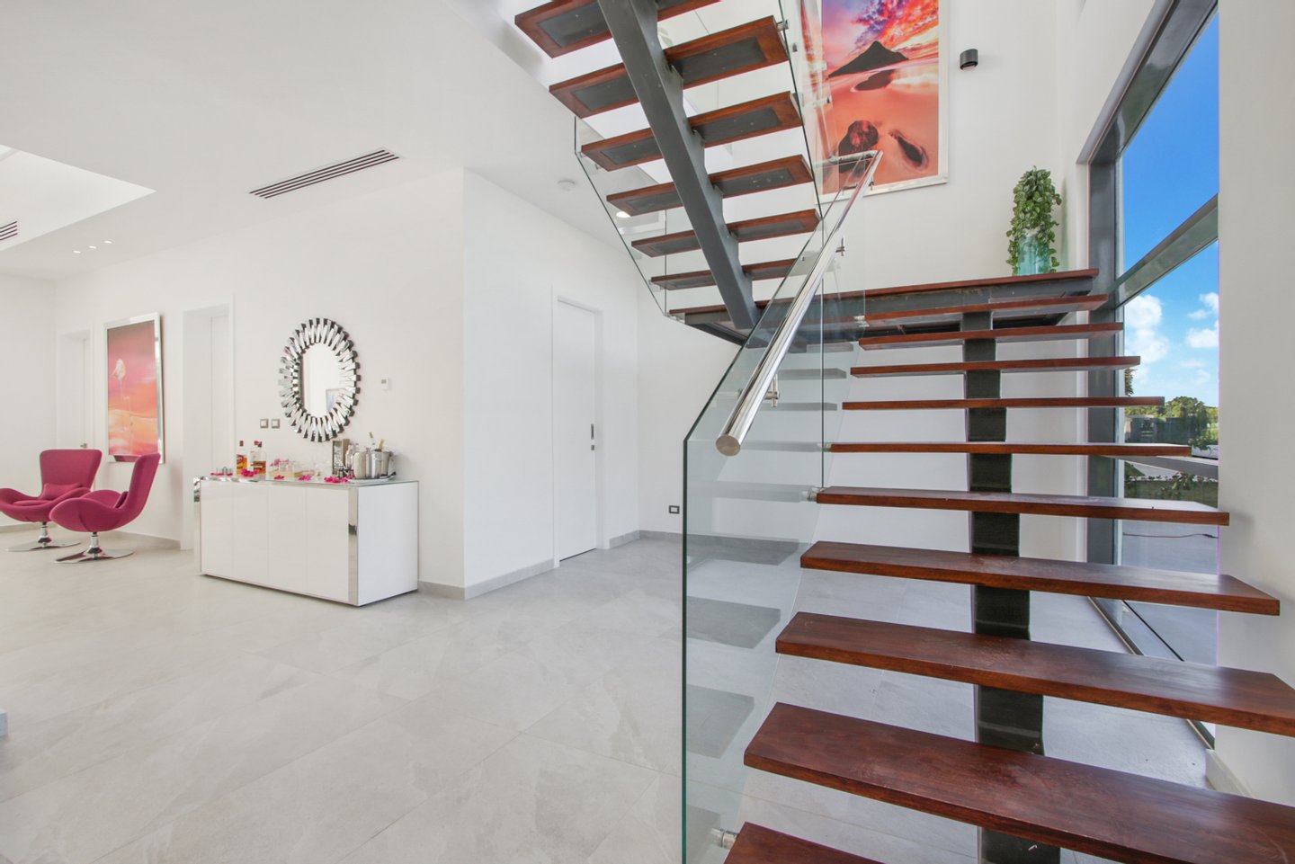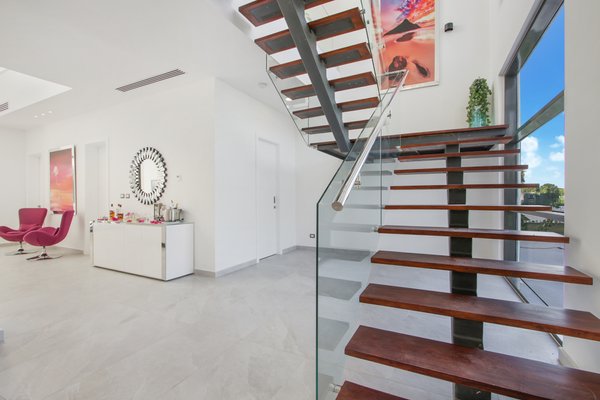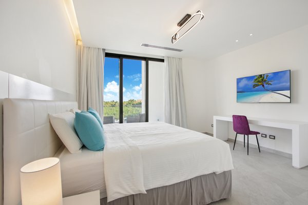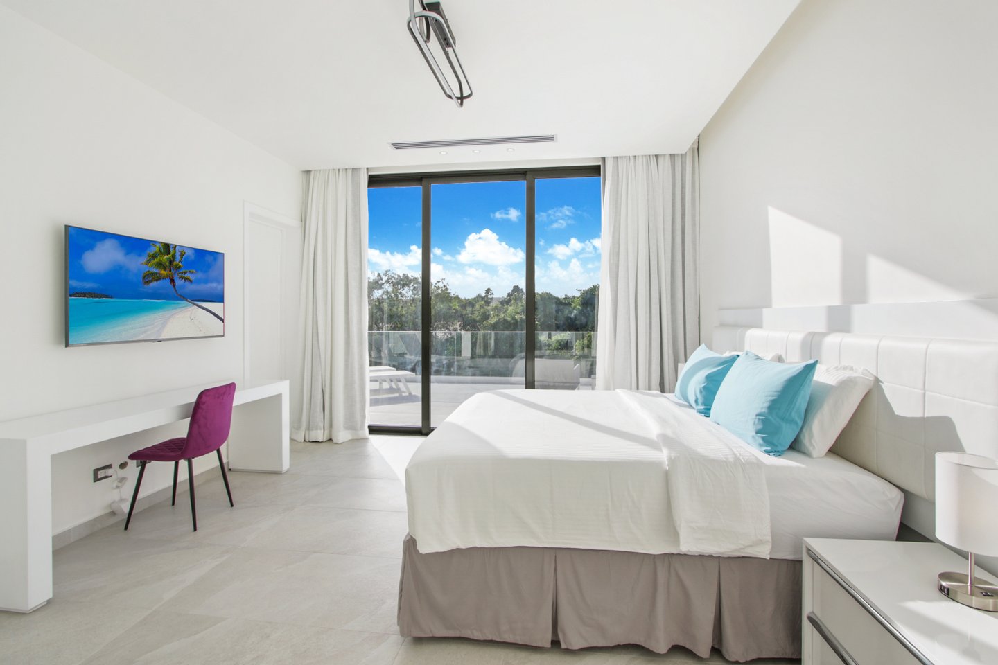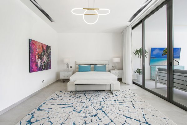 Set across two thoughtfully designed levels, the villa features open-concept living spaces, clean architectural lines, and high ceilings that create a bright, airy ambiance throughout. The main level includes a spacious primary suite and a guest bedroom, while the second floor houses four additional bedrooms, each with private outdoor access, blending luxury with nature.