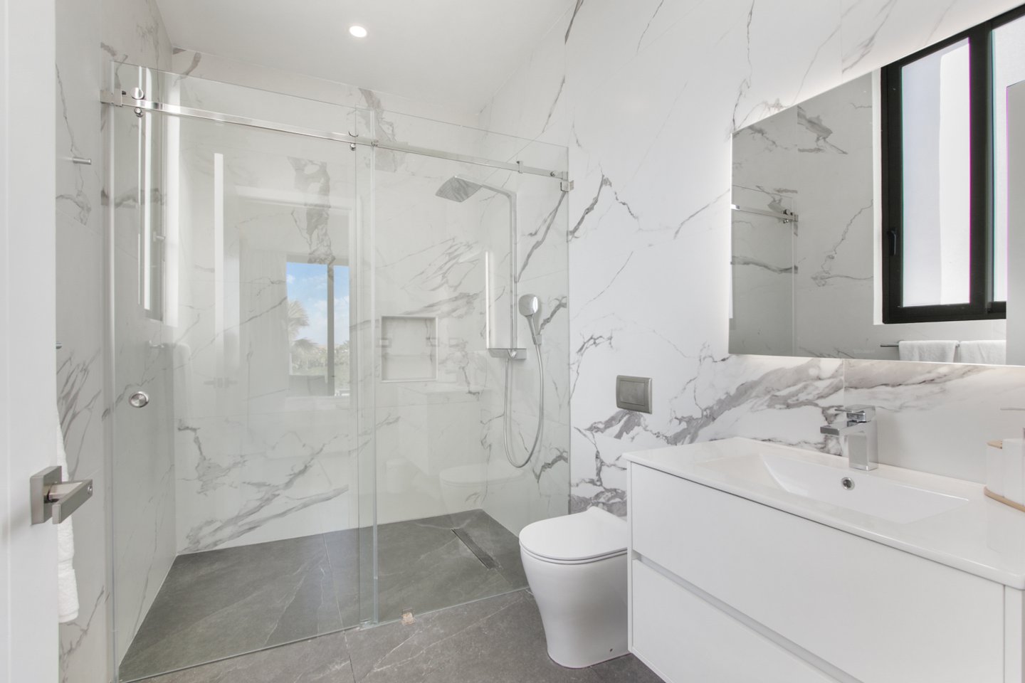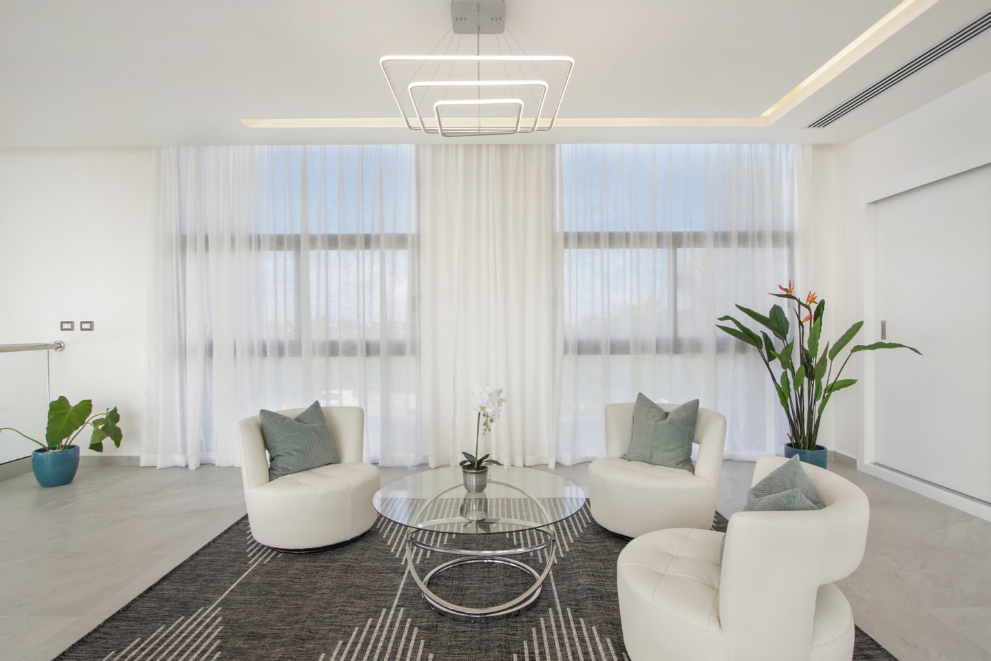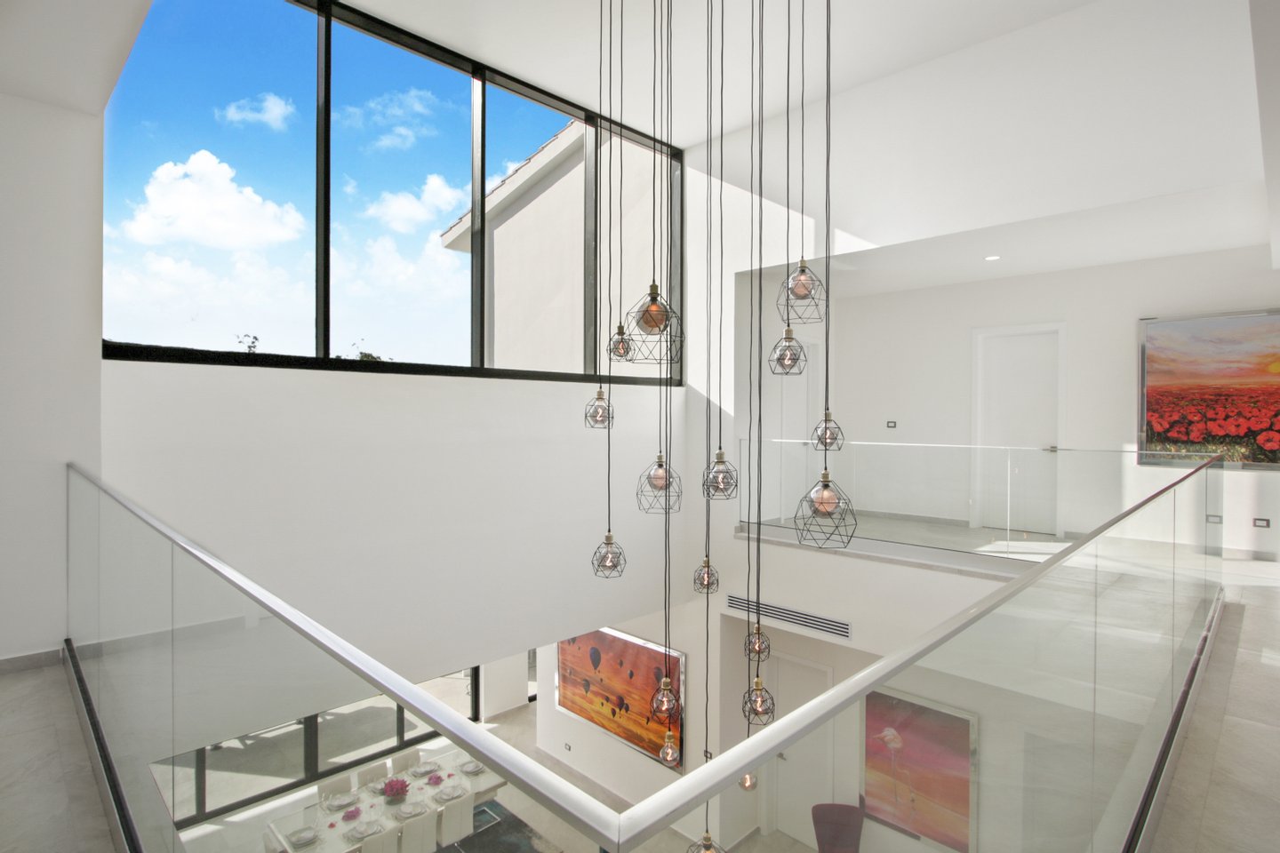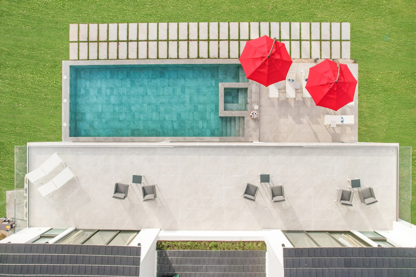 Set across two thoughtfully designed levels, the villa features open-concept living spaces, clean architectural lines, and high ceilings that create a bright, airy ambiance throughout. The main level includes a spacious primary suite and a guest bedroom, while the second floor houses four additional bedrooms, each with private outdoor access, blending luxury with nature.