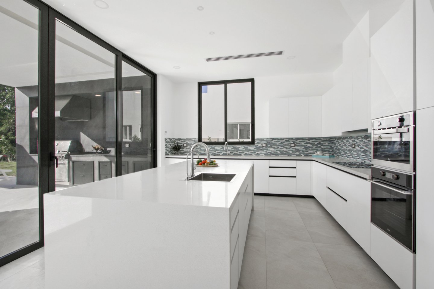 Sleek, open-plan kitchen and expansive indoor-outdoor living areas