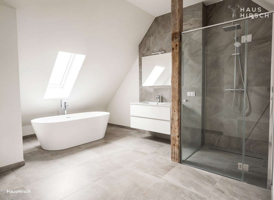 - Wellness-Tempel: Das geplante Design-Bad ist ein Traum mit Tageslicht. Stellen Sie sich eine freistehende Badewanne unter dem Dachfenster und eine großzügige Walk-in-Dusche vor – Ihr privates Spa.