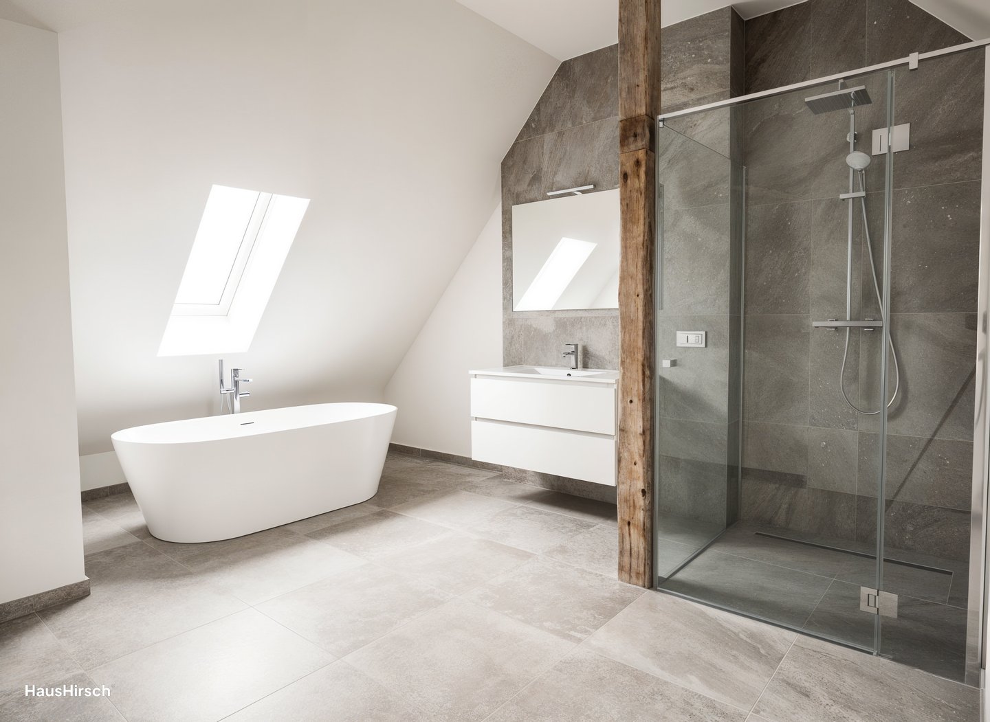 •Designbad mit großformatigen Fliesen (wahlweise Grigio, Schiefer Cream, Sand, Warmbraun etc.)