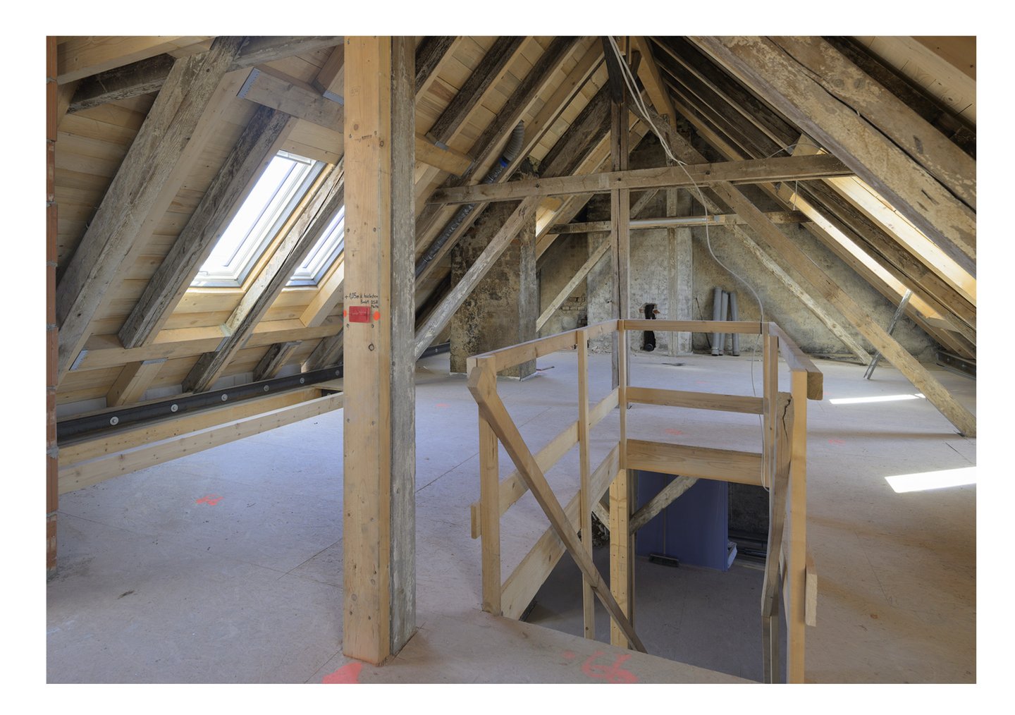 •Maßgefertigte 3-fach-verglaste Holzfenster nach Denkmalvorschrift in der Außenfassade eingearbeitet, zur Hofseite moderne Dachflächenfenster und bodentiefe Verglasung der Loggia