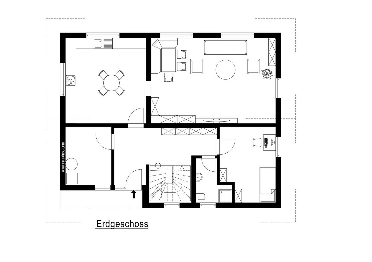 + Hauswirtschaftsraum mit allen Medienanschlüssen, Platz für Waschmaschine und Trockner