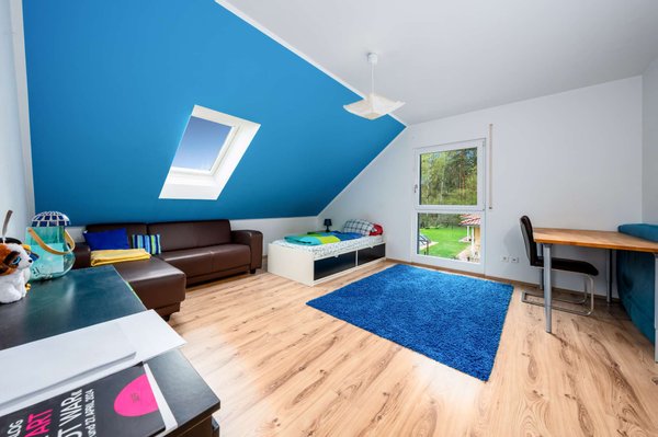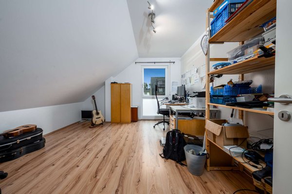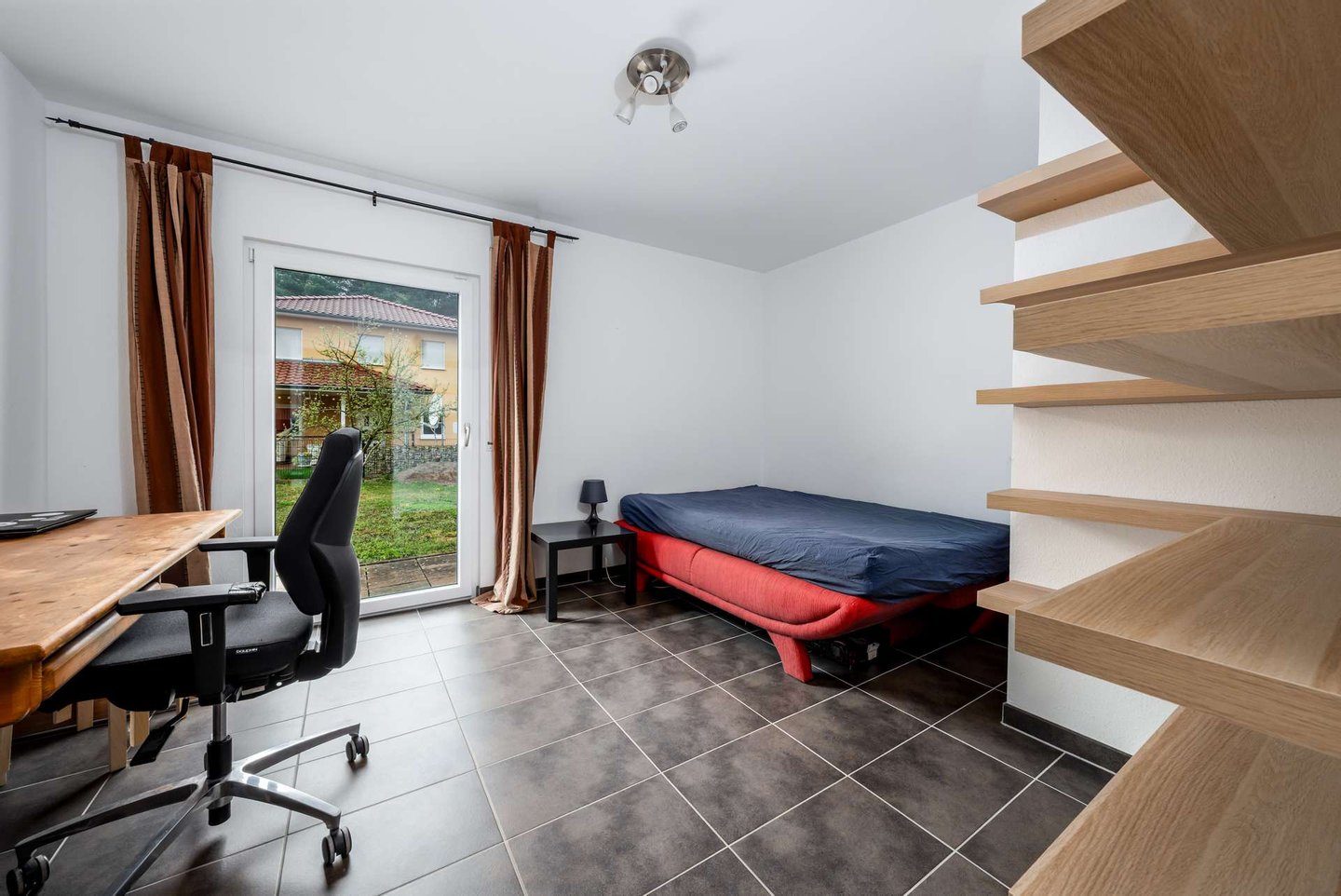 Ein besonderes Highlight ist das Gästezimmer mit eigenem Bad, ausgestattet mit Dusche, WC und hochwertiger Sanitärkeramik von Villeroy & Boch – inklusive einer kleinen, privaten Terrasse. Ideal für Übernachtungsgäste oder als separates Arbeitszimmer.