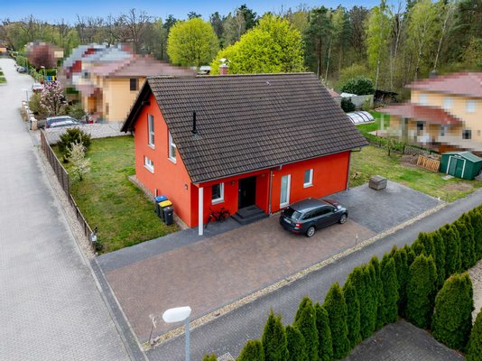 Das Wohngebiet befindet sich in einer ruhigen, abgelegenen Spielstraße am Rande eines idyllischen Waldes. Es liegt in zweiter Reihe zum Wald, wodurch die Sonne bis in den Herbst auf die Terrasse scheint und für eine angenehme Atmosphäre sorgt.