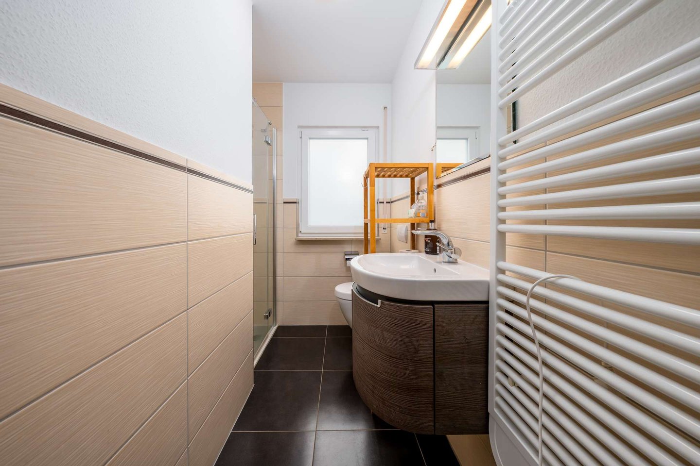 + Gästezimmer mit eigenem Bad (Dusche/WC) und Keramiken von Villeroy & Boch und eigener kleiner Terrasse