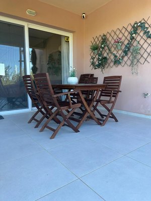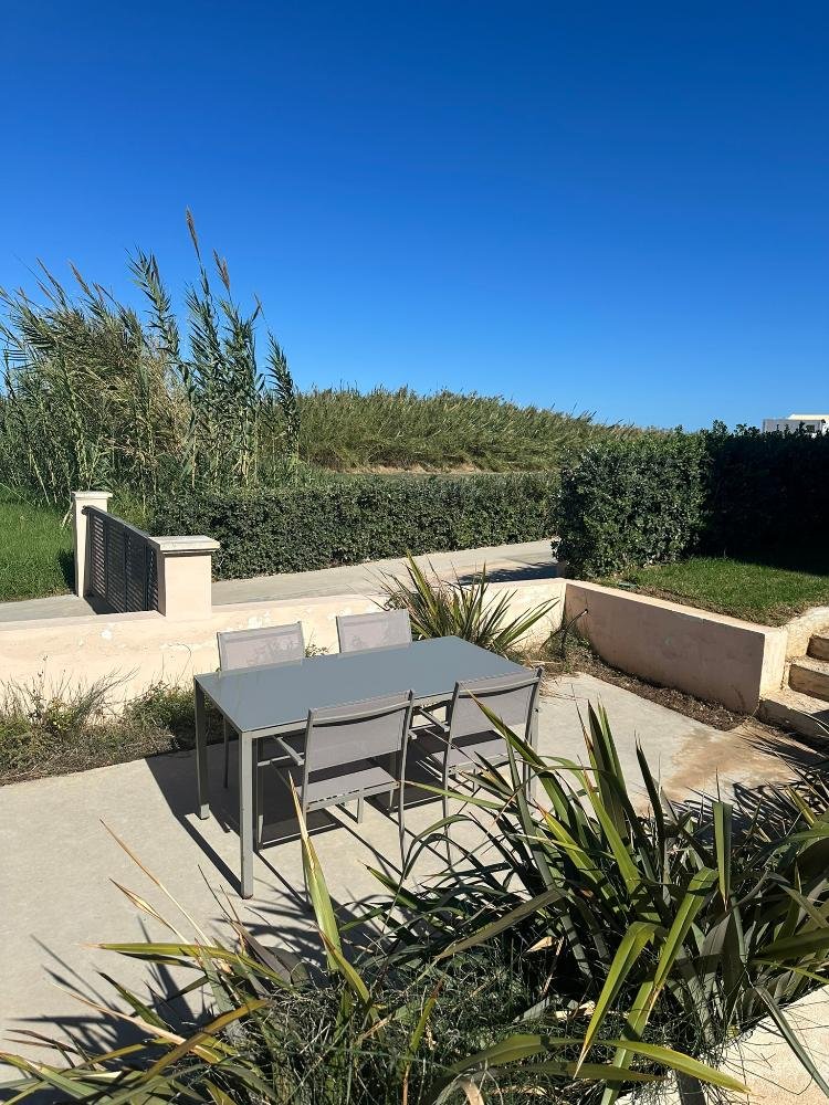 Der Außenbereich erweitert den Wohnraum nach draußen und eignet sich perfekt zum Essen, Entspannen und Genießen der friedlichen Umgebung.