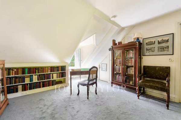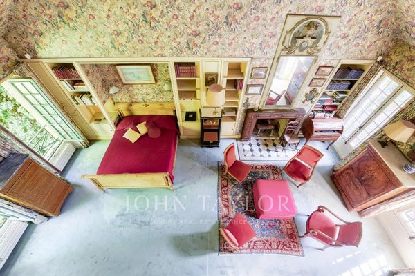 - Ein "Kathedralen"-Hauptschlafzimmer mit mehr als 5 m hohen Decken, mit Bad und Ankleidezimmer, die alle Zugang zu einem Zwischengeschoss bieten