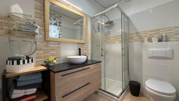 Das Haus verfügt über zwei Schlafzimmer und zwei Badezimmer. Mittelpunkt des Wohnens ist die große, moderne Küche, die viel Platz für gemeinsames Kochen und Leben bietet. Der Wintergarten erweitert den Wohnraum und schafft eine helle, angenehme Atmosphäre zu jeder Jahreszeit.