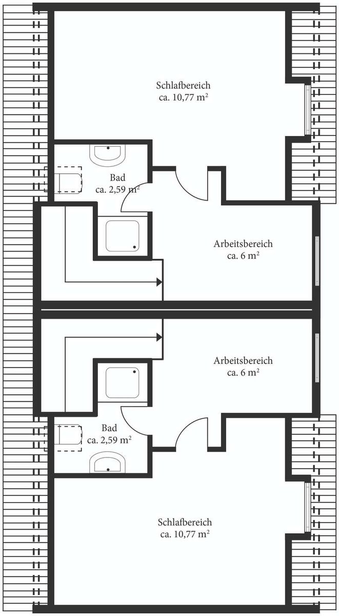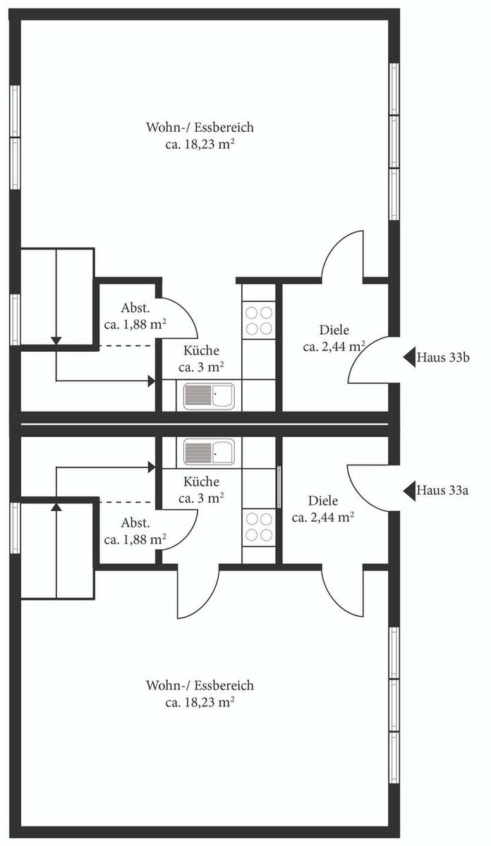 - Wohnfläche von ca. 90 m² (jeweils ca. 45 m² pro Haus)