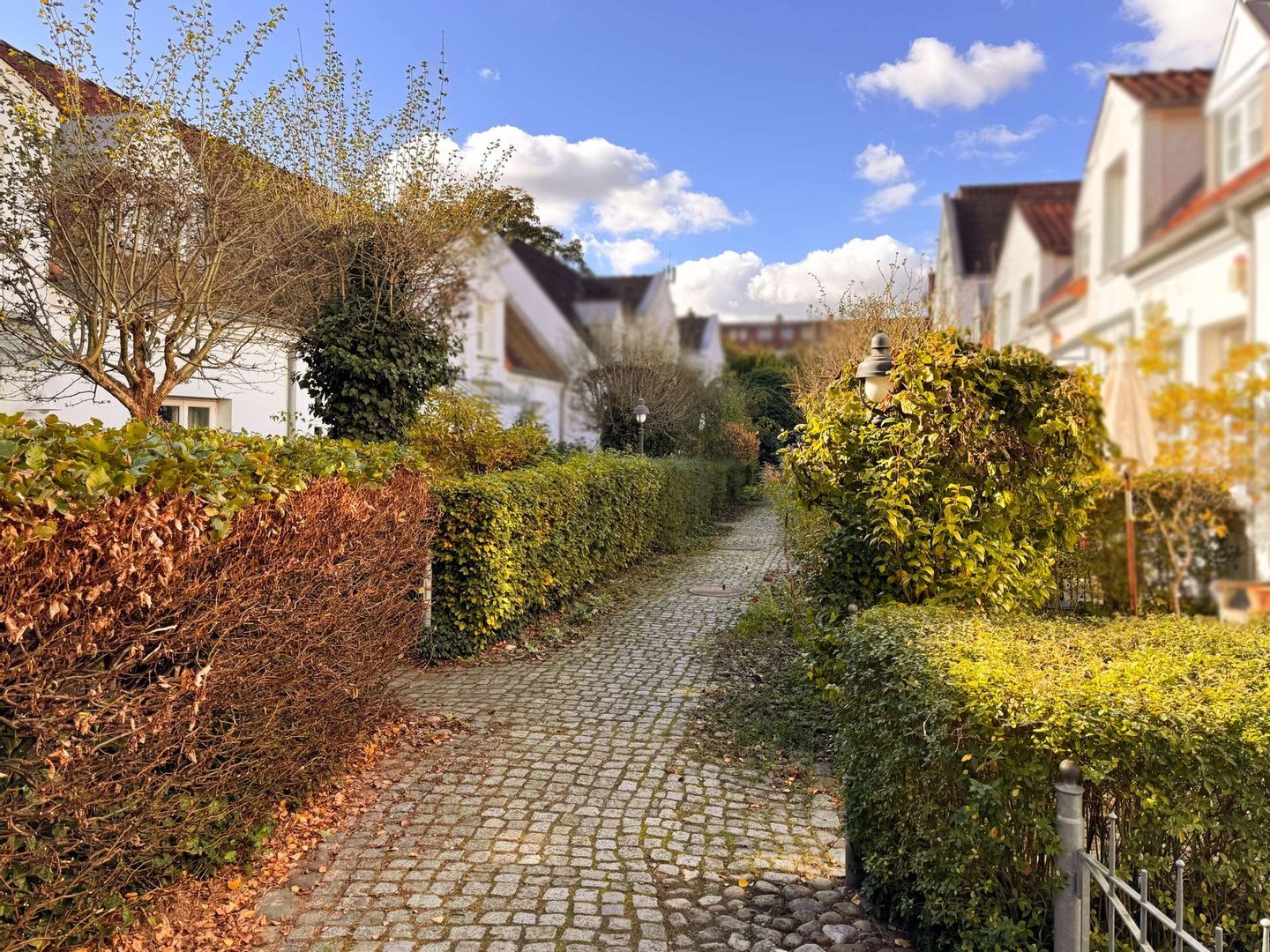 Auf dem ca. 1.600 m² großen Grundstück befinden sich insgesamt 17 Reihenhäuser. Die beiden zum Verkauf stehenden Häuser liegen abseits der Straße und bieten urbanes Wohnen in idyllischer und gleichzeitig zentrumsnaher Lage. Die Häuser sind aktuell vermietet. Sofern eine Selbstnutzung gewünscht ist, müssten die neuen Eigentümerinnen bzw. Eigentümer Eigenbedarf anmelden. Die Räume der Häuser sind hell und freundlich. Die Erdgeschosse verfügt jeweils über einen hellen Wohn- und Essbereich, eine Küche, einen Eingangsbereich sowie einen Abstellraum unter der Geschosstreppe mit Waschmaschinenanschluss. Im Dachgeschoss befinden sich jeweils ein Schlafzimmer, ein offener Arbeitsbereich und ein Duschbad mit Fenster. Ende letzten Jahres, im Oktober 2024, wurde die Heizungsanlage ausgetauscht und durch Fernwärme ersetzt.