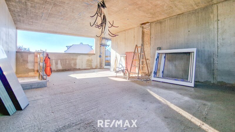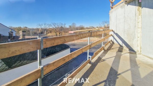 2. OG: Zimmer mit Zugang zur Terrasse, Zimmer mit Zugang zum Balkon, Badezimmer (Doppelwaschtisch, bodenebene Dusche, WM-Anschluss), separate Toilette, Gang, ca. 7,90 m² Balkon und ca. 7,90 m² Terrasse.