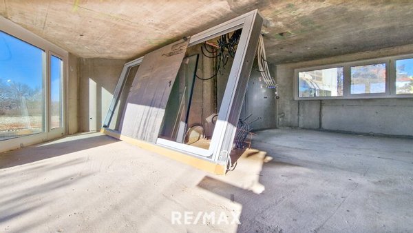 - Hochwertige Kunststoff-Alu-Fenster und -Fenstertüren mit 3-Scheiben-Isolierverglasung und elektrischen UP-Senkrechtmarkisen