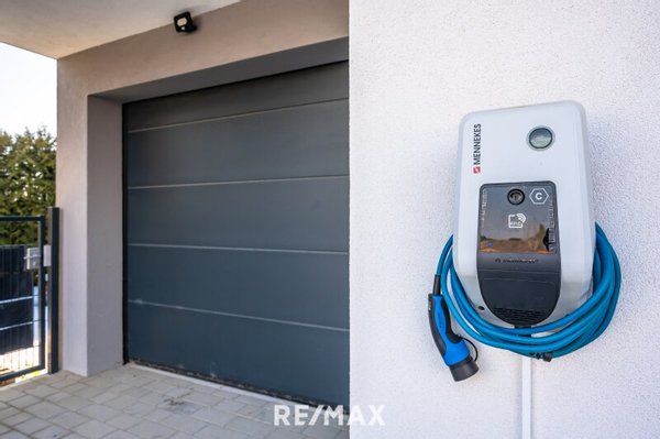 Eine Photovoltaikanlage mit 2 kWp unterstützt die Energieversorgung des Hauses und speist unter anderem die Heizung sowie die E-Ladestation für Elektrofahrzeuge mit einer Leistung von 11 kW – ideal für zeitgemäße Mobilität.