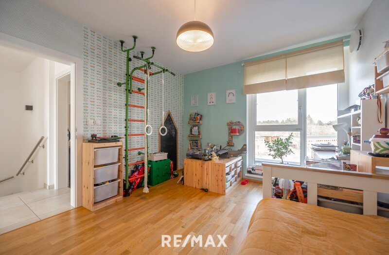 Im Obergeschoss befindet sich ein großzügiges Elternschlafzimmer mit direktem Ausgang auf die Terrasse und einem wunderschönen Ausblick auf den See. Zwei weitere helle Zimmer eignen sich ideal als Kinderzimmer, Gästezimmer oder Homeoffice und bieten jeweils einen angenehmen Blick auf See und ins Grüne.