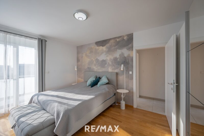 Im Obergeschoss befindet sich ein großzügiges Elternschlafzimmer mit direktem Ausgang auf die Terrasse und einem wunderschönen Ausblick auf den See. Zwei weitere helle Zimmer eignen sich ideal als Kinderzimmer, Gästezimmer oder Homeoffice und bieten jeweils einen angenehmen Blick auf See und ins Grüne.