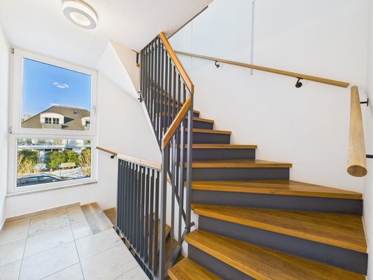 - Treppenhaus in Juramarmor mit Trittstufen aus Eiche