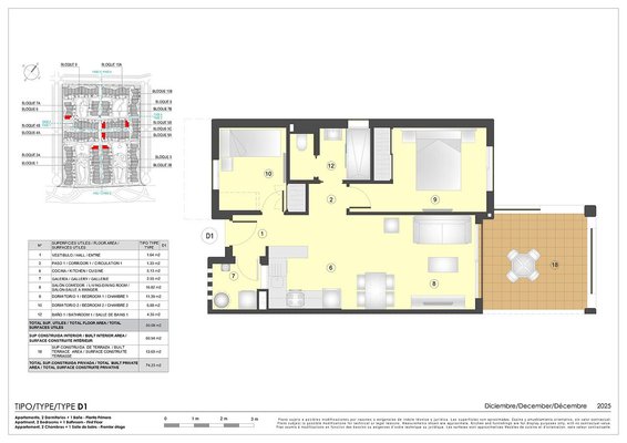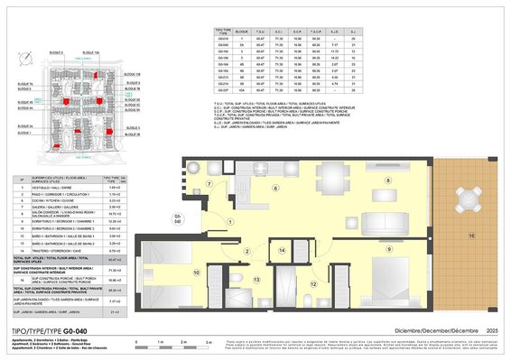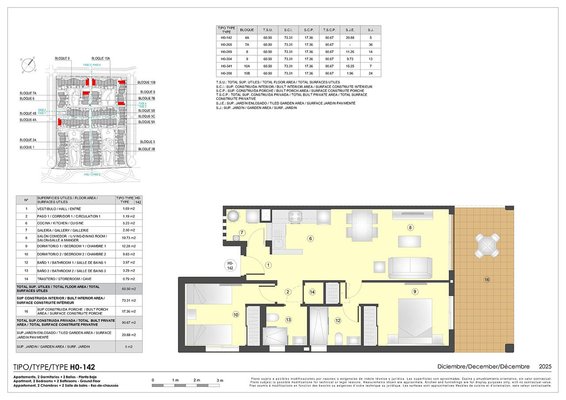 Die Wohnanlage verfügt über Appartements mit 1, 2 und 3 Schlafzimmern und großen Terrassen. Die Wohnungen im Erdgeschoss haben einen privaten Garten und die Penthouse-Wohnungen bieten private Dachterrassen mit eigenem Zugang, Dusche, Wasserhahn und Antennenanschluss und viele auch mit Meerblick. Die Aufstellung eines Grills ist ebenfalls möglich.