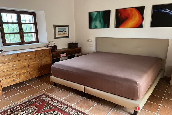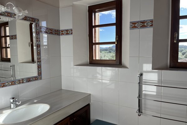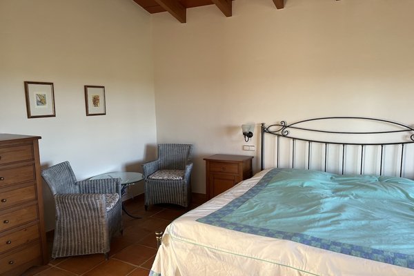 Der rechte Flügel des Hauses beherbergt zwei komfortable Schlafzimmersuiten sowie ein Gäste-WC. Beide Schlafzimmer haben direkten Zugang in den Außenbereich. Im Obergeschoss befindet sich ein weiteres Schlafzimmer mit Bad en Suite sowie ein Balkon, von dem aus Sie einen traumhaften Blick auf die Landschaft und die Berge genießen können.
