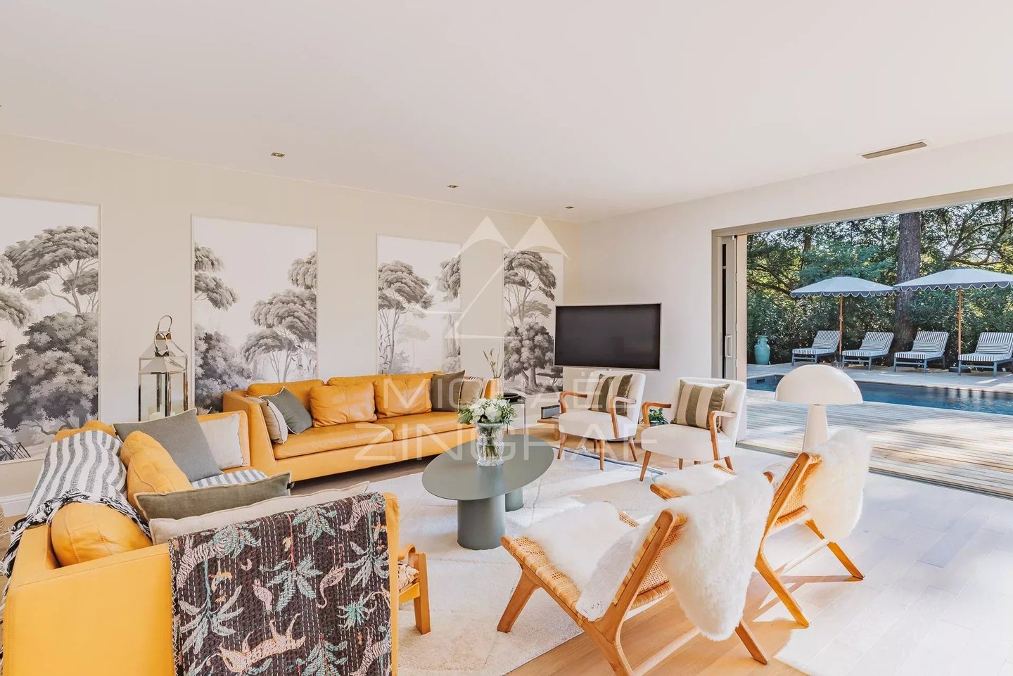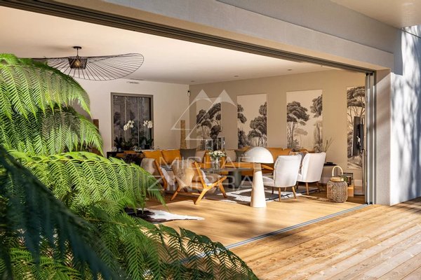 Der Außenbereich, ein echter Lebensraum, besteht aus großen Terrassen aus exotischem Holz, einem beheizten Swimmingpool und einem eleganten, ausgestatteten Poolhaus.