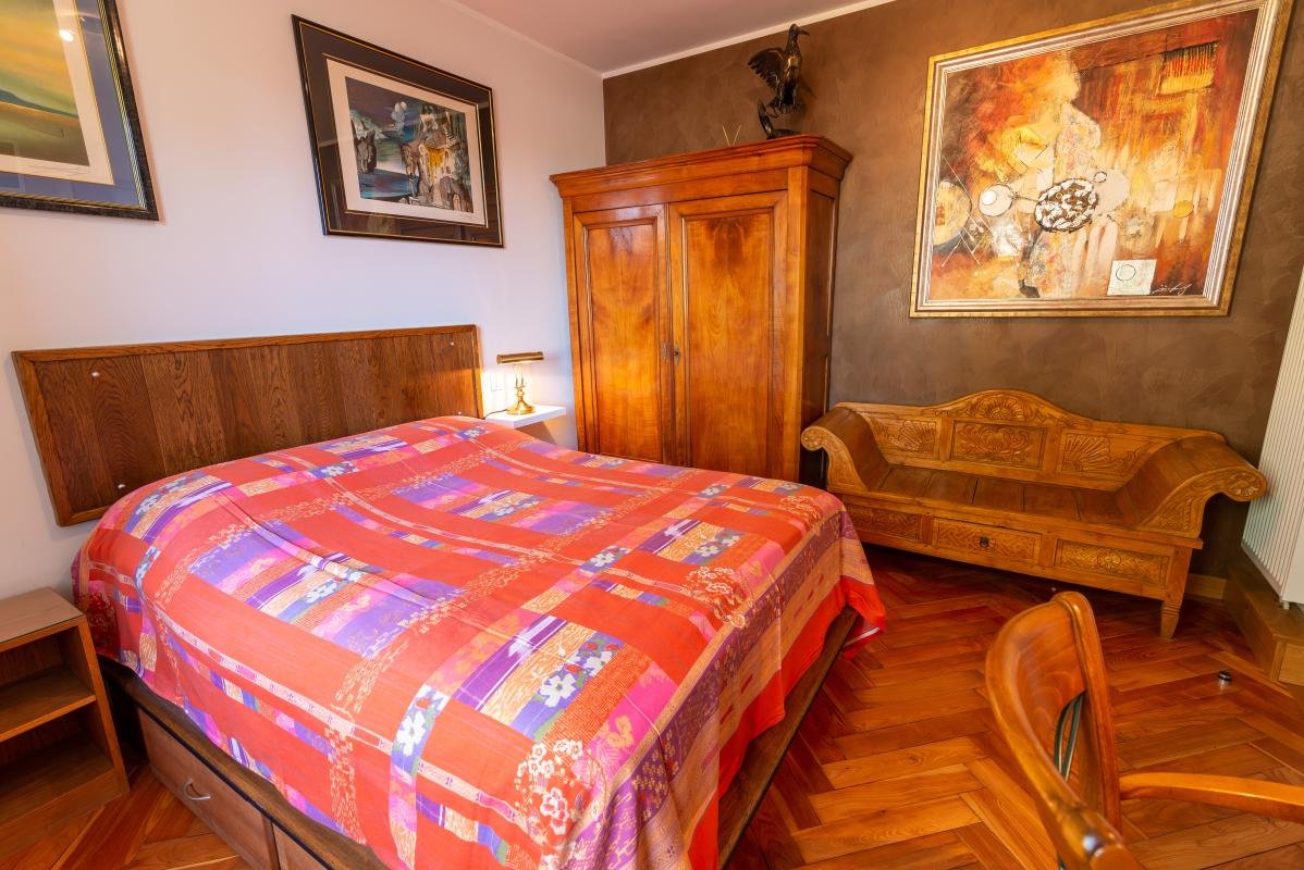 Im Erdgeschoss verfügen drei Schlafzimmer jeweils über ein eigenes Badezimmer und eine private Toilette, die jedem Bewohner optimalen Komfort bieten. Einer von ihnen hat einen Balkon. Im Obergeschoss befindet sich ein zusätzliches Schlafzimmer mit Badezimmer und Abstellraum. Im Keller bietet das Haus einen echten Wellnessbereich mit Sauna und Dampfbad, ergänzt durch einen Weinkeller und eine doppelte Innengarage. Das Grundstück umfasst außerdem ein unabhängiges Studio, einen Anbau als Empfangsbereich sowie zwei Außengaragen. Draußen umgibt der große, sorgfältig gepflegte Garten das Haus angenehm, wo Sie ein Gegenpool, einen Steingrill und viele Außenparkplätze finden. Das Anwesen wird derzeit als Gästehaus betrieben und bietet Catering-Dienstleistungen an.