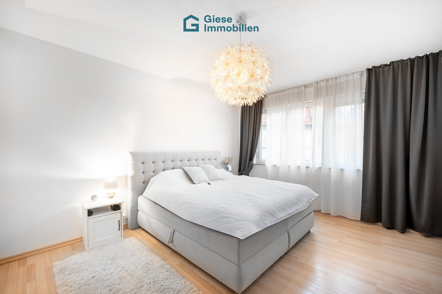 Vom Flur aus gelangen Sie zunächst in das Schlafzimmer, das ruhig zur Innenhofseite liegt und ideale Voraussetzungen für Erholung bietet.