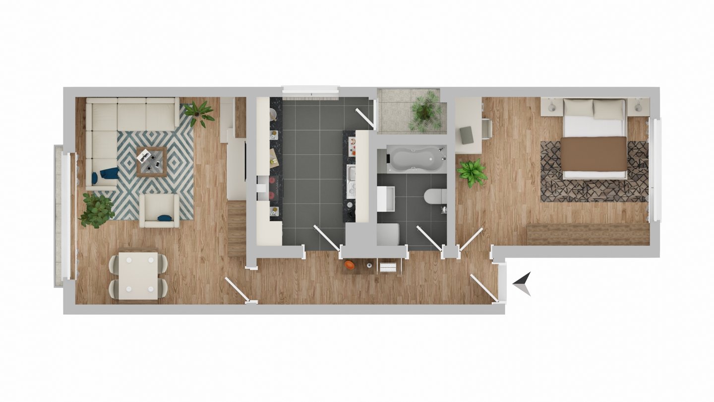 Diese moderne 2-Zimmer-Wohnung mit ca. 60 m² überzeugt durch einen klaren, funktionalen Grundriss und ist solide vermietet – ideal für Kapitalanleger, die Wert auf Nachhaltigkeit und Wohnqualität legen. Die Wohnung ist aktuell für 700 € Kaltmiete monatlich vermietet und bietet damit eine attraktive, langfristige Einnahmebasis.