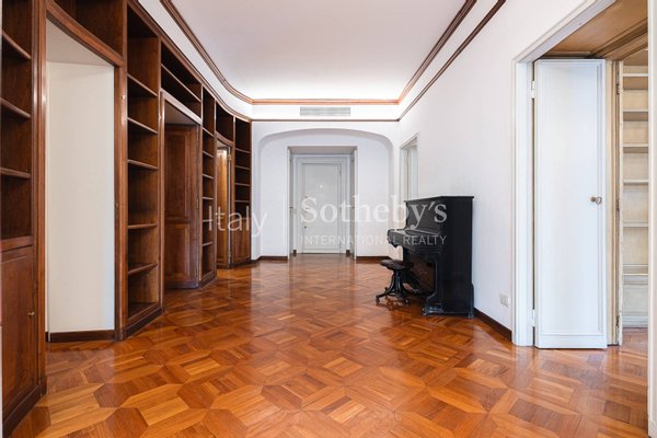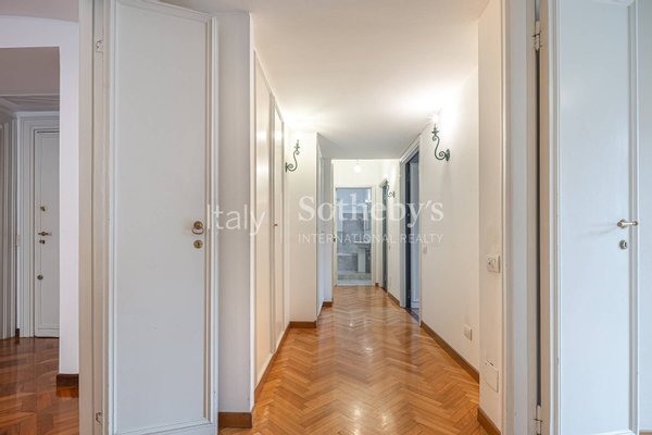 The property is completed by a 37 sqm (398,3 sq ft) private garage within the building and a large cellar, ideal for wine storage. Ideally located just steps from San Babila, the Duomo, and Via Montenapoleone, this distinguished residence offers immediate access to Milan's finest shopping, dining, and cultural landmarks, as well as convenient airport connections.