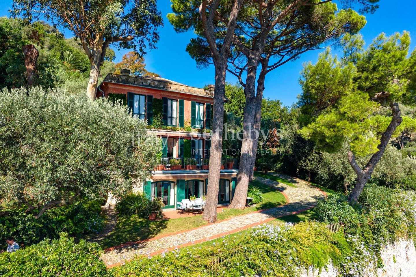 In einer der begehrtesten Lagen des Portofino-Parks, innerhalb eines privaten Anwesens zwischen Santa Margherita Ligure und Paraggi, versetzt diese prestigeträchtige Immobilie mit Panoramablick auf das Meer des Golfo del Tigullio ihre Gäste in eine exklusive Atmosphäre bei absoluter Privatsphäre und bietet atemberaubende Ausblicke vom Sonnenaufgang bis zum Sonnenuntergang.