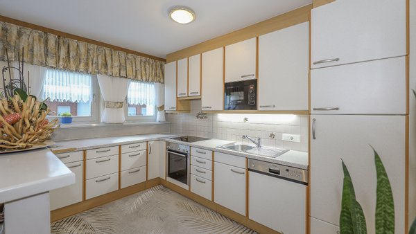 Die Wohnung verfügt über drei Schlafzimmer, ein großzügiges Badezimmer mit Badewanne, Waschtisch, Fenster und Waschmaschinenanschluss, eine Gästetoilette sowie das große Wohn/Esszimmer mit offener Küche und kleinen Abstellraum/Speis.
