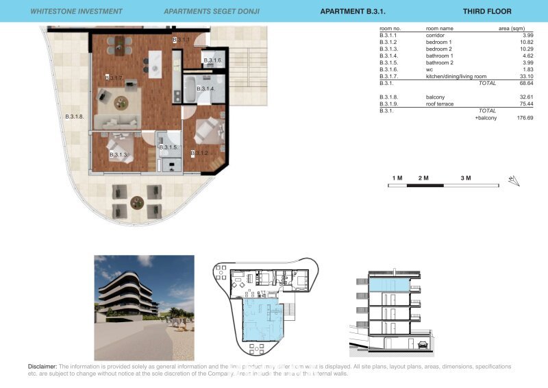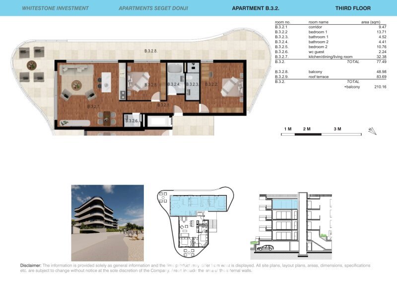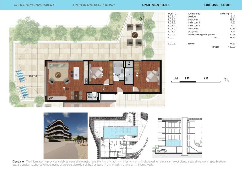 Das Projekt besteht aus 2 Häusern in moderner Architektur und Ausstattung, mit jeweils acht klimatisierten Apartments (Phase 1 und Phase 2) sowie Tiefgarage in hochqualitativer Bauweise. Außerdem verfügt jedes Haus über einen eigenen Swimmingpool.