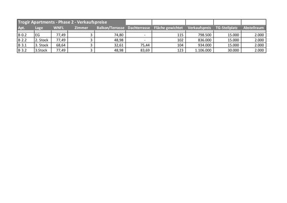 Es stehen in Phase 2 noch 3 Apartments zum Verkauf - eine Verkaufspreisliste sowie die Verkaufspläne finden Sie in der Beilage!