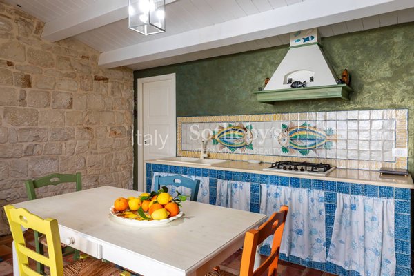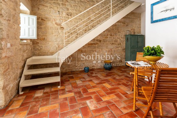 Die Residenz erstreckt sich über zwei Ebenen. Der Eingang führt in einen gepflegten Relaxbereich - ein einladender, privater Raum, der über einen gut organisierten Flur zum großzügigen Hauptschlafzimmer führt, das durch einen privaten Innenhof ergänzt wird - ideal für ruhige Momente im Freien - sowie zum ersten Badezimmer. Eine interne Treppe verbindet das Obergeschoss, wo sich ein heller Open-Space-Wohnbereich mit Küche im authentisch sizilianischen Stil öffnet, aufgewertet durch hochwertige Materialien und ausgesuchte Ausführungen.