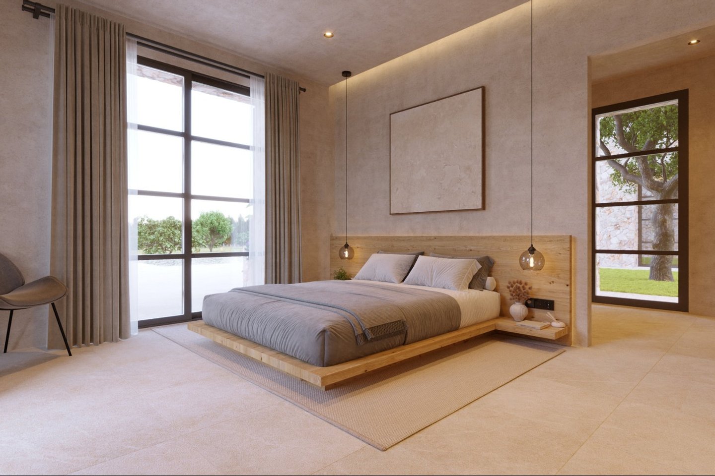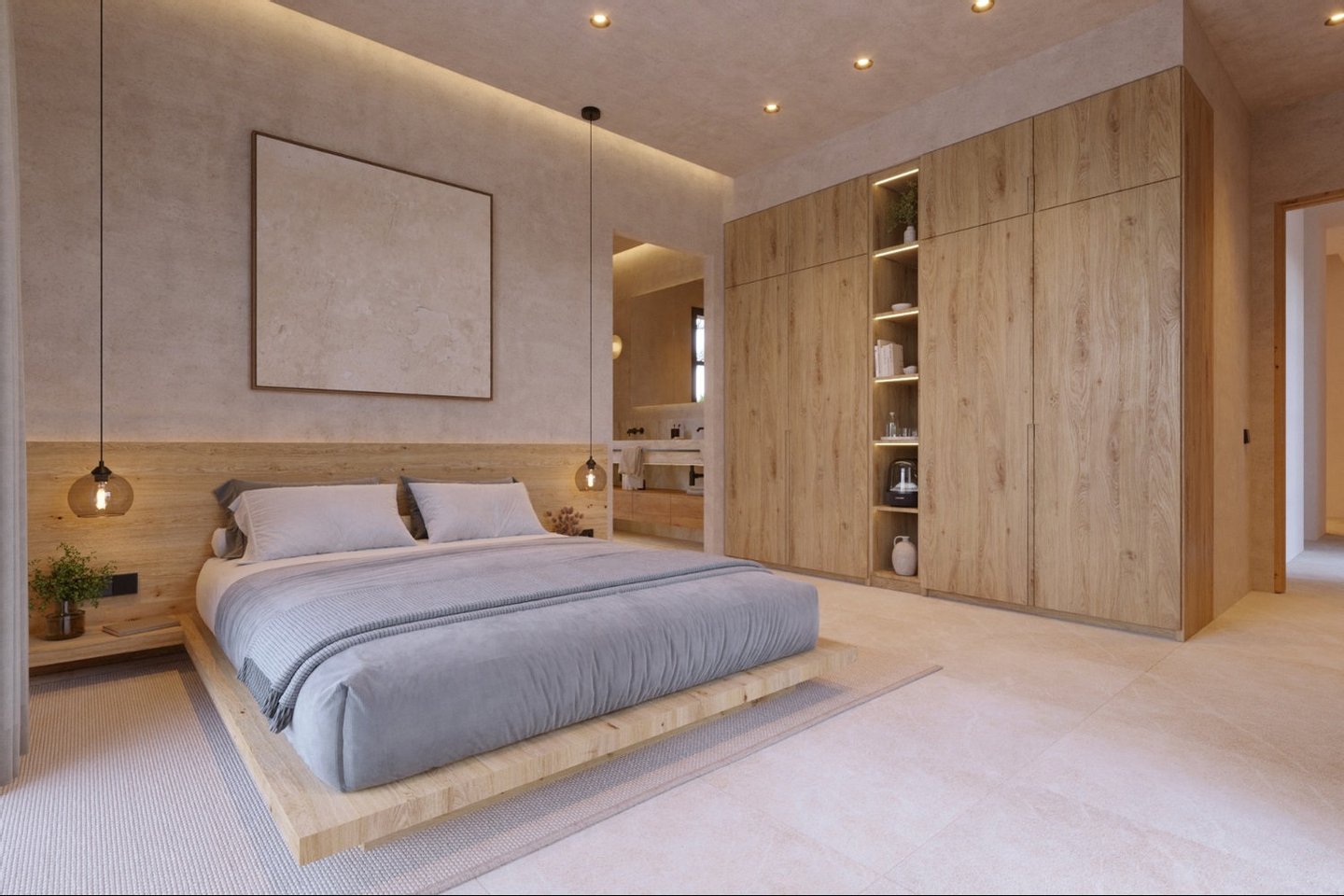 Im Obergeschoss erwarten Sie ein Schlafzimmer mit Bad en suite sowie das Masterschlafzimmer mit großzügiger Ankleide, eigenem Bad und einer privaten Terrasse. Ein exklusiver Rückzugsort mit herrlichem Weitblick.