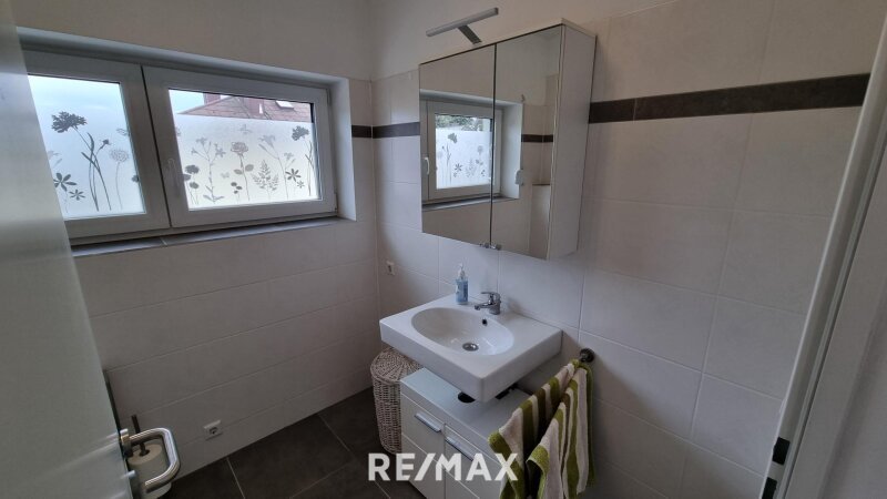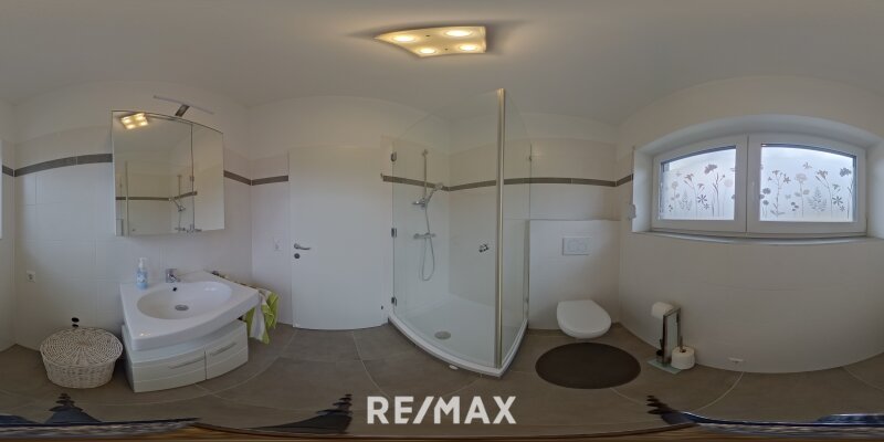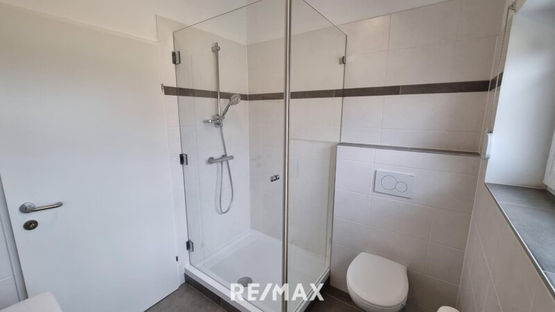 Badezimmer: Über eine separate Tür gelangen Sie in das helle Badezimmer, welches mit einer geräumigen Dusche und modernen Armaturen