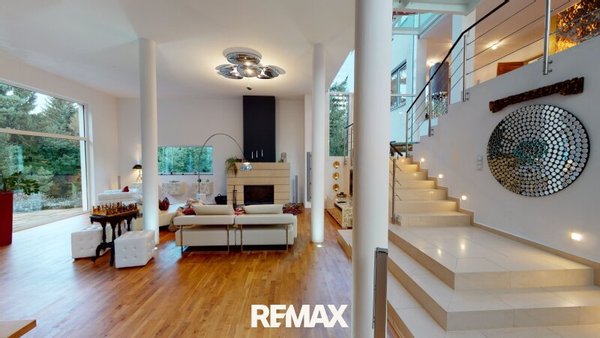 Großzügige, offene Raumkonzepte, beeindruckende Raumhöhen und elegant platzierte Glasflächen durchfluten das Haus mit Licht und schaffen eine Atmosphäre von Weite, Ruhe und Eleganz. Das Zusammenspiel aus moderner Linienführung und hochwertigen Materialien verleiht der Immobilie eine unvergleichliche Großzügigkeit und mondäne Ausstrahlung.