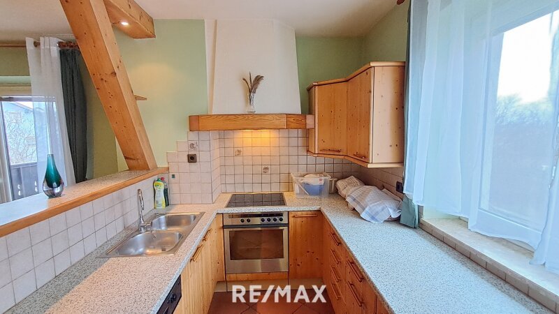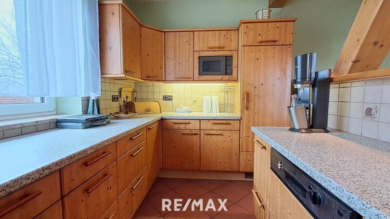 Die Küche mit Essbereich lädt zum Kochen, Genießen und Beisammensein ein und bietet einen direkten Ausgang auf die großzügige Terrasse. Von hier aus gelangen Sie in den Garten – perfekt für Frühstück im Freien, Sommerabende oder spielende Kinder im Grünen.