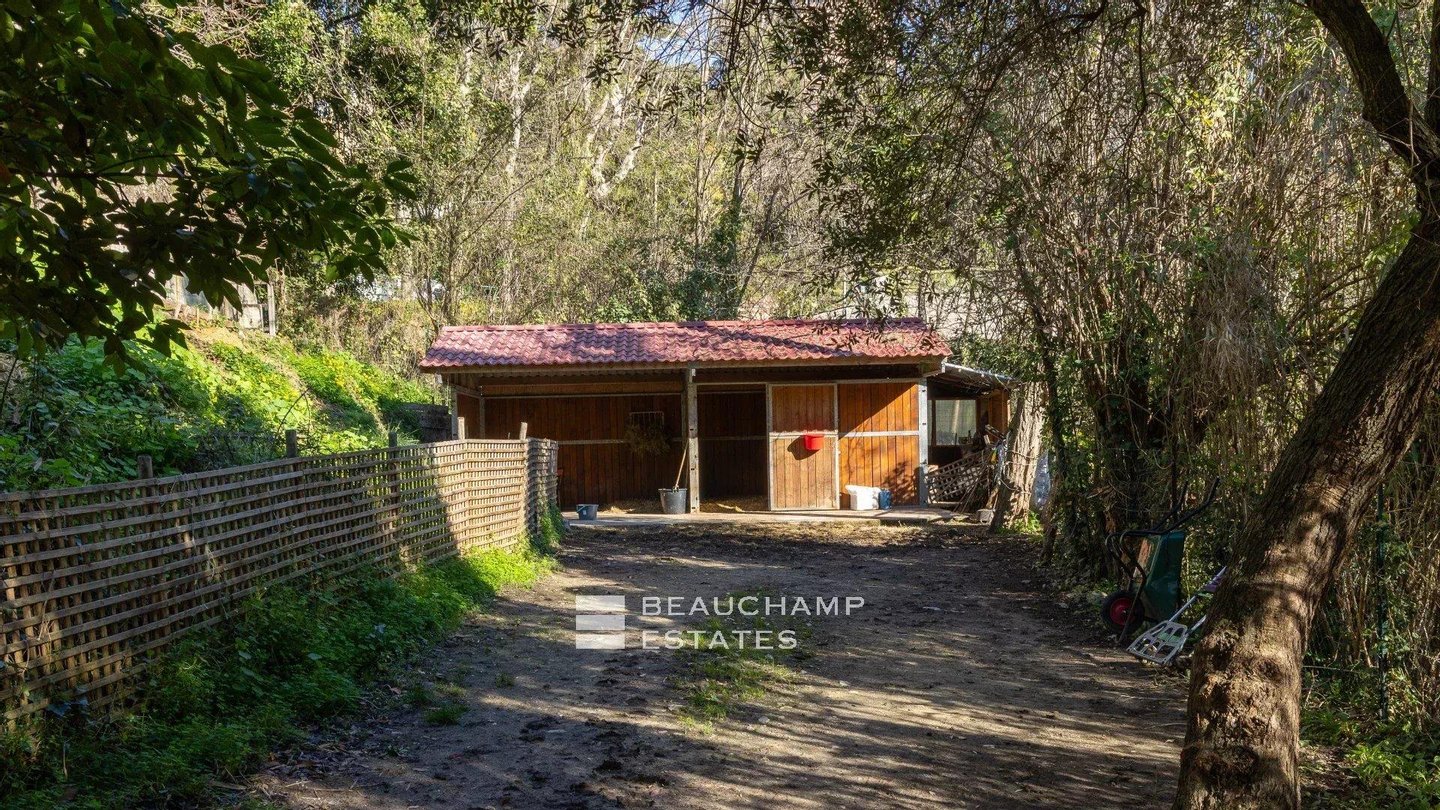 Die Hauptvilla zeichnet sich durch einen Dreifach-Empfangsraum, eine voll ausgestattete Küche, fünf Schlafzimmer mit eigenem Bad und ein Fitnessstudio aus. Das Anwesen umfasst außerdem viele Nebengebäude, darunter drei zusätzliche Villen, ein unabhängiges Studio und eine große Garage, die mehrere Fahrzeuge aufnehmen kann.