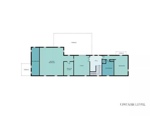 Im Obergeschoss verfügt das Hauptschlafzimmer über ein eigenes Badezimmer und öffnet sich zu drei privaten Terrassen, ergänzt durch ein zweites Schlafzimmer mit eigenem Bad.