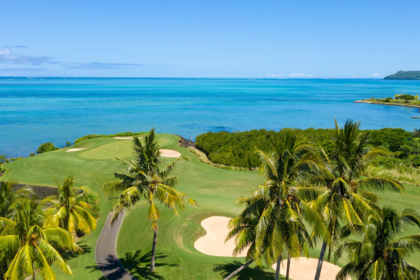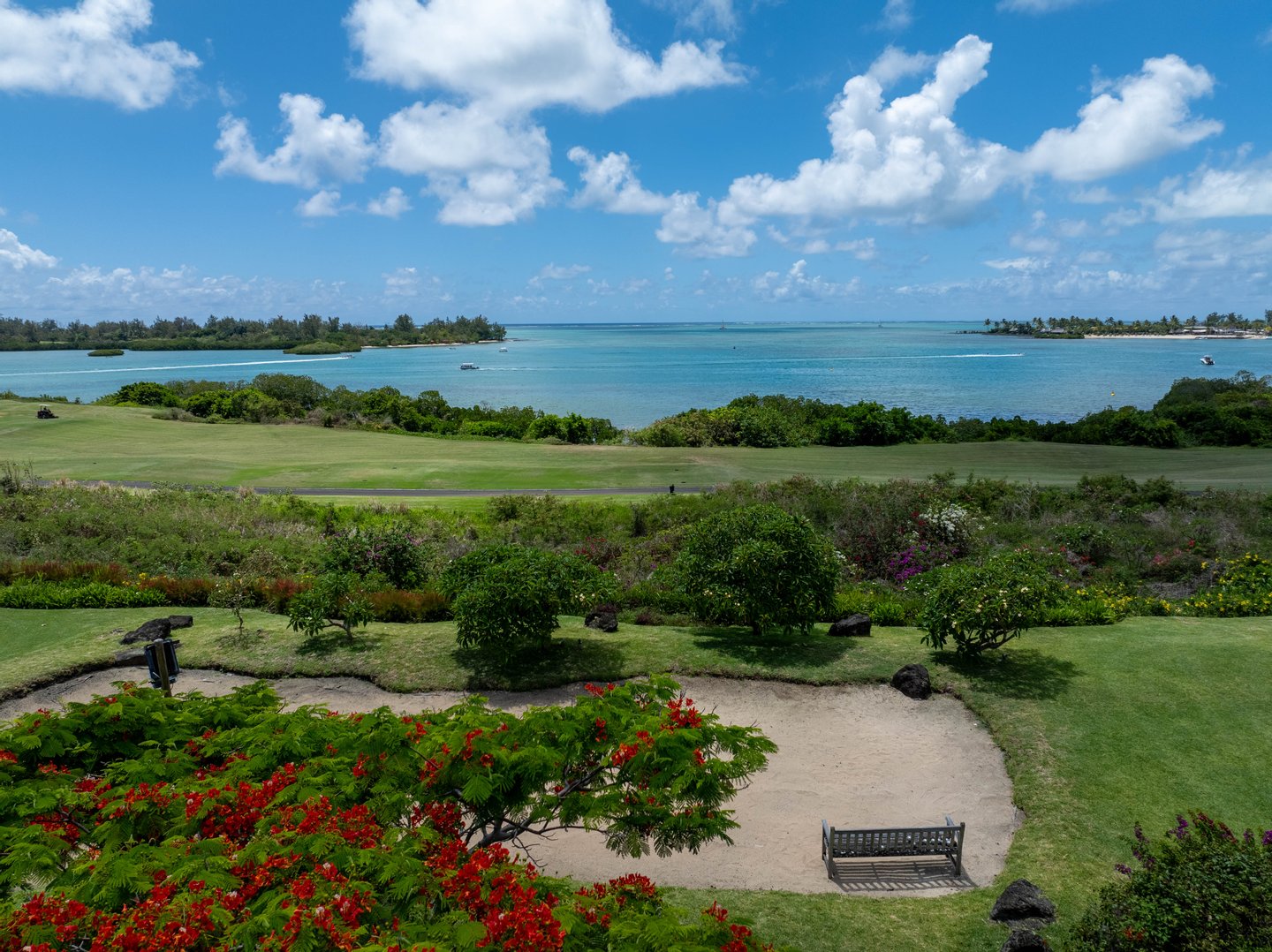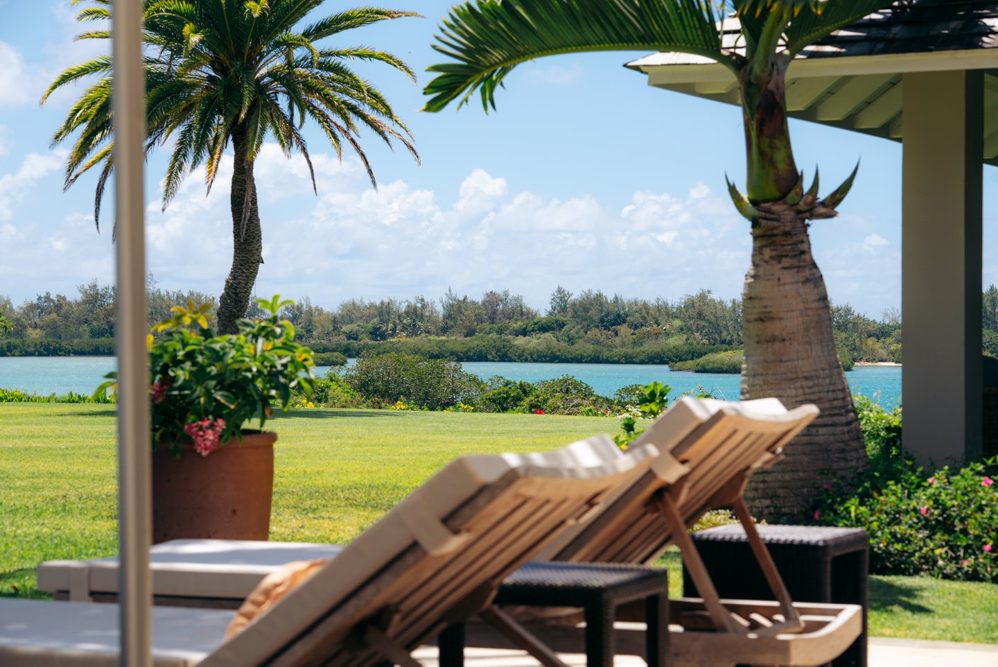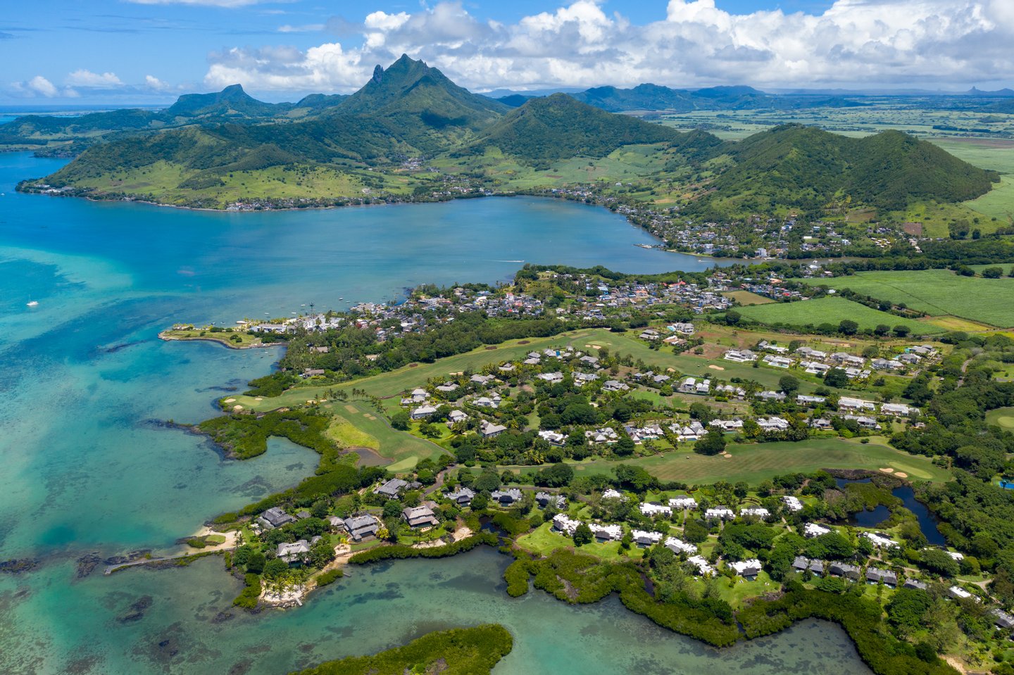 Nestenn bietet eine außergewöhnliche Gelegenheit, ein Stück Paradies auf dem prestigeträchtigen Anwesen Anahita in Beau Champ zu besitzen. Dieses atemberaubende Anwesen ist der Inbegriff von Luxus und bietet einen atemberaubenden Panoramablick auf die türkisfarbene Lagune, die ikonische Île aux Cerfs und die üppig grünen Fairways des Golfplatzes. Mit 850 m² eleganter Wohnfläche auf einem weitläufigen 3600 m² großen Grundstück bietet dieses Haus unübertroffene Privatsphäre und Ruhe.