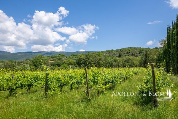 Land: 11 Hektar, davon ca. 4 Hektar Olivenhaine, 5 Hektar Park-, Weide- und Waldflächen und ca. 1,6 Hektar Weinberge. Die Pflanzdichte pro Hektar beträgt 3.900 bis 5.000 Rebstöcke. Die Rebstöcke sind einfaches Spalier (Guyot) und teilweise gespornte Kordonreben. Die Rebsorten sind hauptsächlich Sangiovese (84%) und zu einem kleinen Teil Merlot (8%) und Syrah (8%).