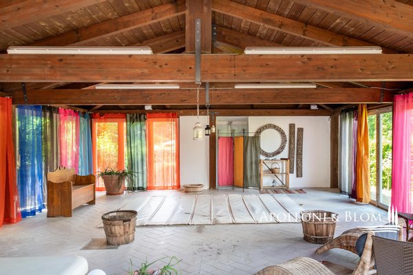 Schwimmbad: 1 Hallenbad von 4x4 m in einem 80 m² großen Glasgebäude mit 37° warmem Wasser, ausgestattet mit einem brandneuen, völlig natürlichen Reinigungssystem auf der Basis von Sauerstoff, Chromotherapie und Hydromassage; 1 Außenbecken von 14x8 m mit Chlor