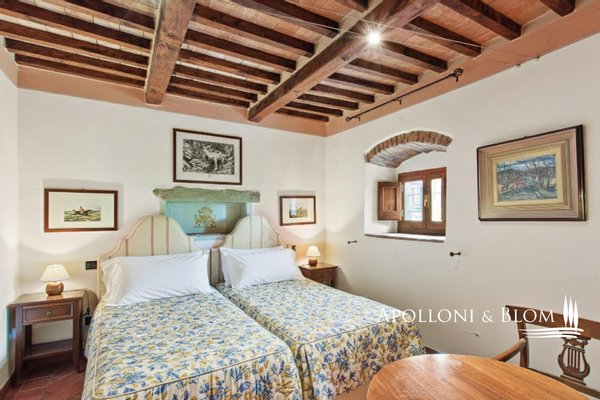 Nur 6 km von der Stadt Cortona entfernt, erstreckt sich dieses Anwesen über 11 Hektar in einer geschützten Ecke der Toskana mit offenem Panoramablick. In seinem Zentrum steht ein authentisches Kloster aus dem 16. Jahrhundert, das gekonnt restauriert wurde, um sein historisches Erbe zu bewahren und gleichzeitig modernen Luxus zu bieten. Ausgestattet mit einem Spa, beheiztem Schwimmbad, privatem Hubschrauberlandeplatz, Klimaanlage, Zugangstor und teilweise möbliert: ein Vorgeschmack auf den außergewöhnlichen Lebensstil, der hinter diesem bezaubernden Anwesen steckt. Auf einer Fläche von 1.360 Quadratmetern befindet sich ein Herrenhaus mit Natursteinfassaden, antiken Holztüren und -fenstern, handverlegten Terrakottaböden, hohen, mit Fresken verzierten Decken und imposanten Kaminen, die große Salons mit einer rustikalen und gemütlichen Atmosphäre prägen, während eine professionelle Küche und eine Pergola mit Blick auf die Gärten eine tadellose Gastfreundschaft garantieren. Das Haupthaus beherbergt 8 Doppelsuiten, während in zwei Nebengebäuden weitere 6 Doppelzimmer zur Verfügung stehen, die sowohl für den privaten Gebrauch als auch für exklusive Unterkünfte geeignet sind. Der Wellnessbereich umfasst eine 80 Quadratmeter große Veranda, auf der sich ein beheiztes Hallenbad mit Chromotherapie und Hydromassage befindet. Der Park verfügt über Steinwege und Treppen, die zu einem Fitness- und Crossfit-Bereich, einem Kinderspielplatz und einem Bio-Gemüsegarten führen. In der Umgebung gibt es Olivenhaine, Weiden und Wälder sowie 1,6 Hektar Weinberge mit IGT Toscana, auf denen hauptsächlich Sangiovese, aber auch Merlot und Syrah angebaut werden. Nebengebäude, Heuböden, ein ehemaliger Tier-/Pferdeunterstand und technische Räume bieten reichlich Unterstützung für den Betrieb. Schließlich bietet ein Baugrundstück die Möglichkeit, die Wohnfläche um weitere 500 Quadratmeter zu erweitern. Kontaktieren Sie uns für alle Details!