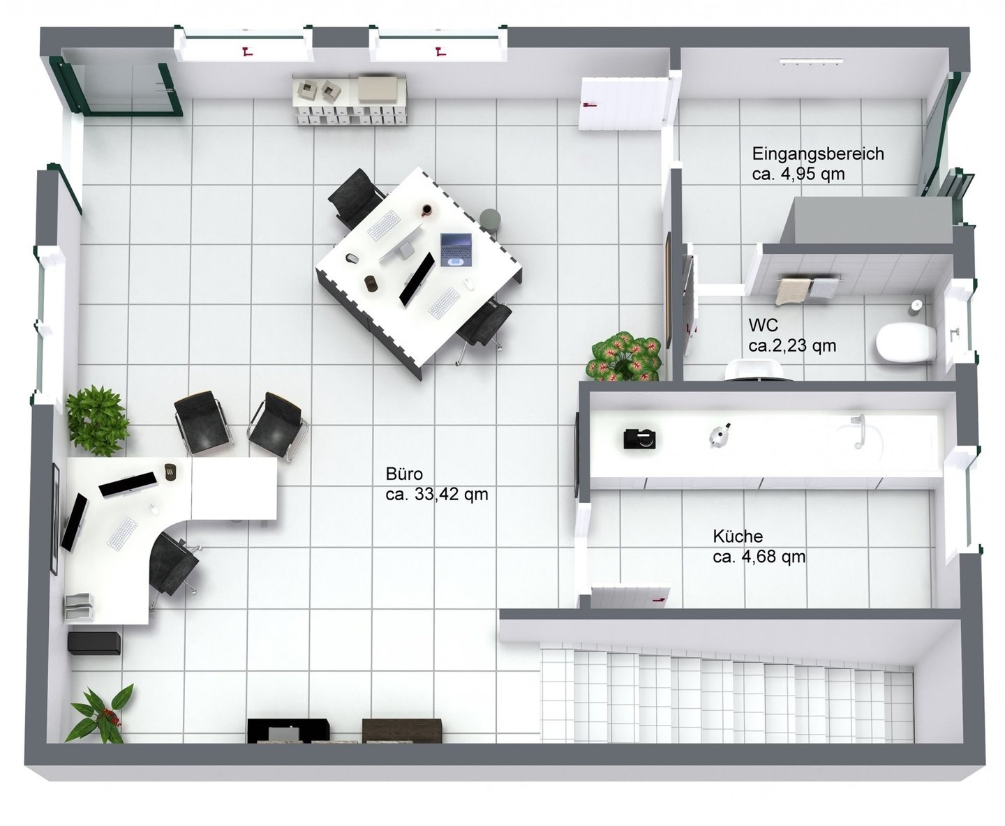 Die Gesamtfläche von ca. 45 m² verteilt sich wie folgt::