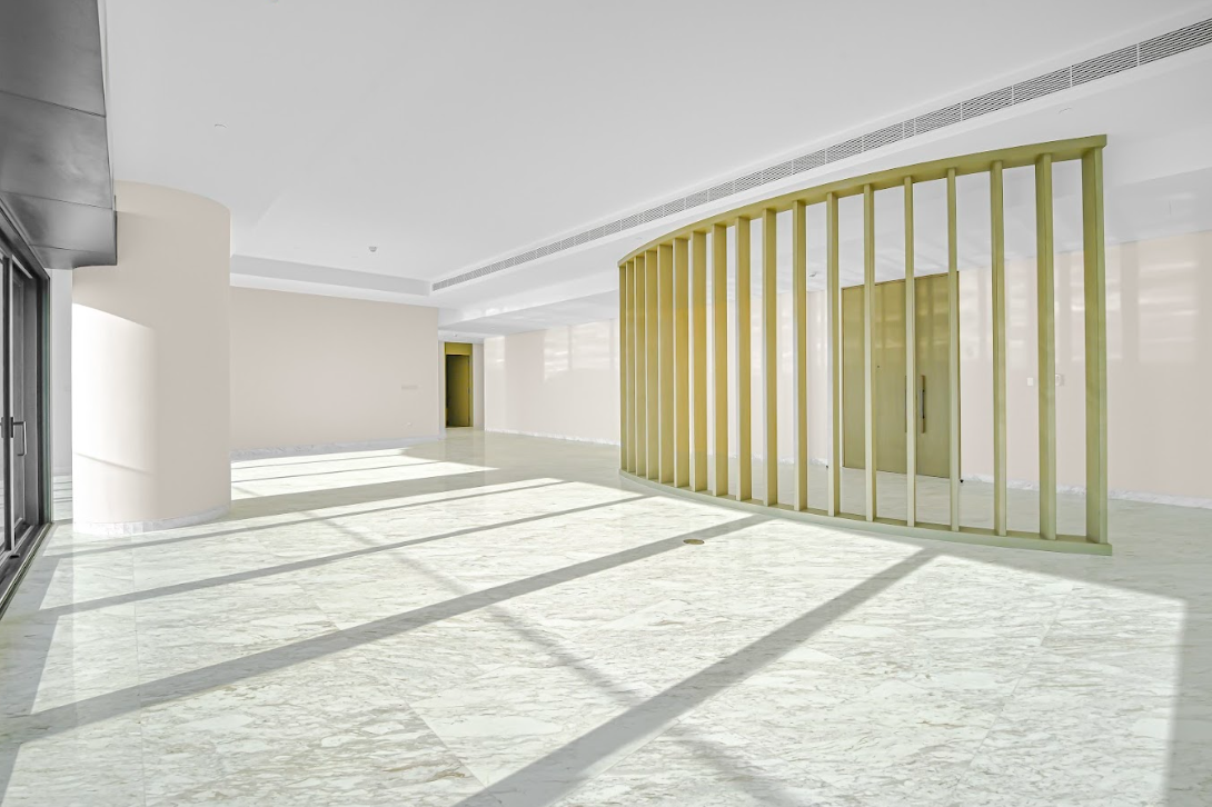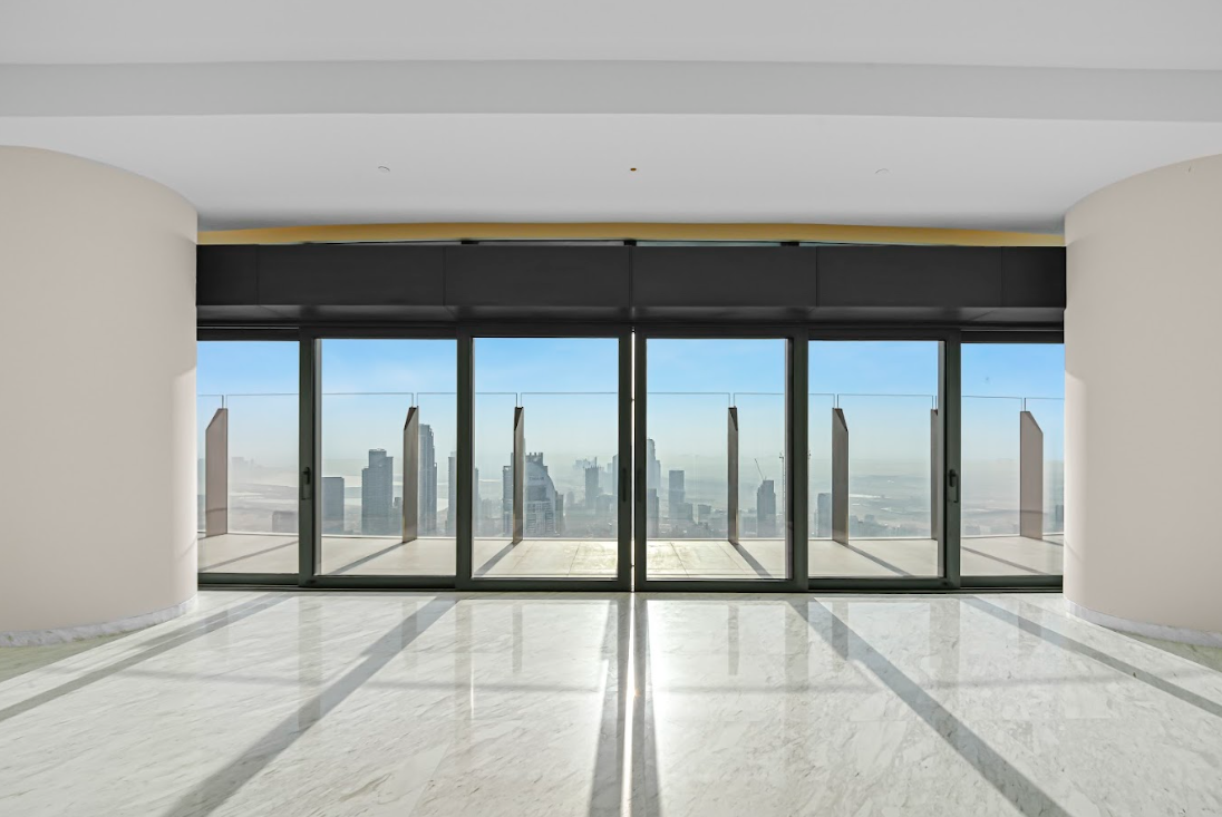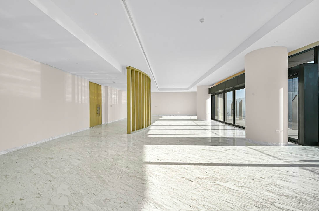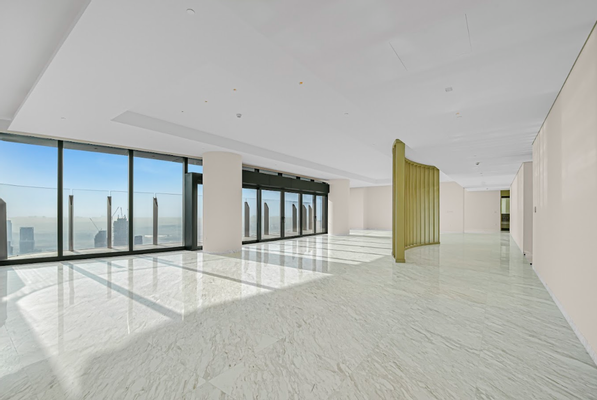 Beim Betreten dieser atemberaubenden Wohnung werden Sie von einem privaten Zugang zur Lobby mit Aufzug und einer Panoramaverglasung vom Boden bis zur Decke begrüßt, die einen atemberaubenden Blick auf die umliegende Stadtlandschaft bietet. Der Grundriss ist für ein groß angelegtes formelles und familiäres Leben konzipiert, mit weitläufigen Empfangsbereichen, mehreren Lounges, formellen und familiären Esszimmern und übergroßen Schlafzimmersuiten.
