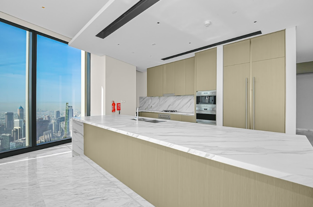 Die Ausstattung dieser Wohnung ist tadellos: Marmorböden, maßgefertigte Tischlerarbeiten, hochwertige Steinoberflächen und eine voll ausgestattete Musterküche mit hochwertigen Markengeräten. Die separate Serviceküche sorgt für zusätzlichen Komfort im Alltag. Alle Schlafzimmer sind mit Einbauschränken und hochwertigen Bädern ausgestattet, die ein Maximum an Komfort und Luxus gewährleisten.