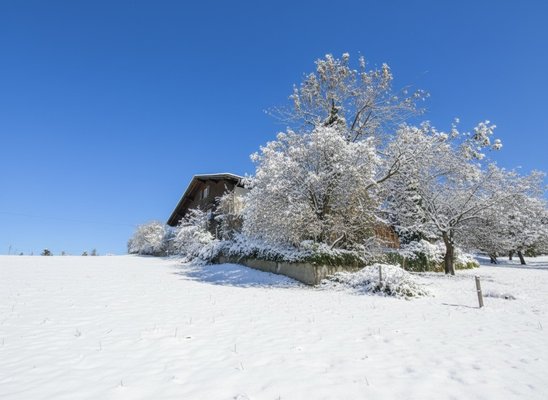 Sie leben mit Weite und in Freiheit idyllisch auf einem kleinen Hügel, umgeben von Wald, Wiesen und Feldern.